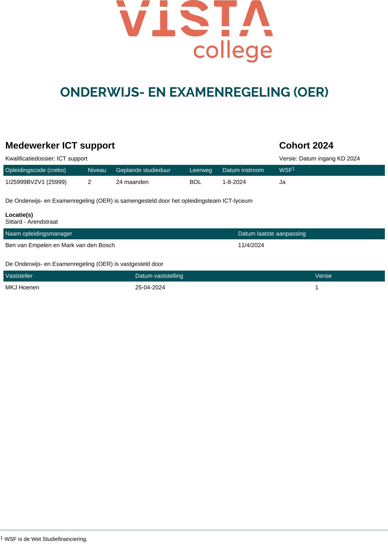 Medewerker ICT support 1I25999BV2V1 in cohort 2024-2025