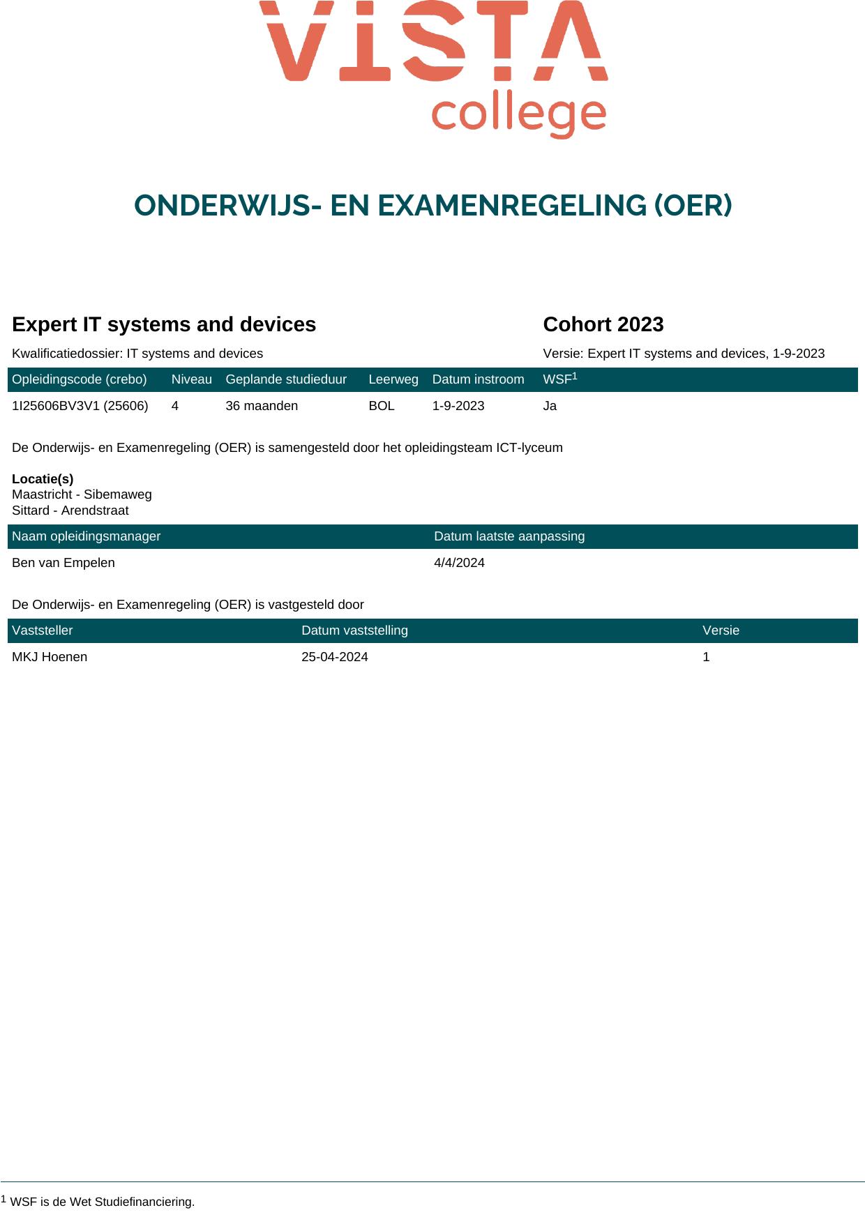 Expert IT systems and devices 1I25606BV3V1 in cohort 2023-2024