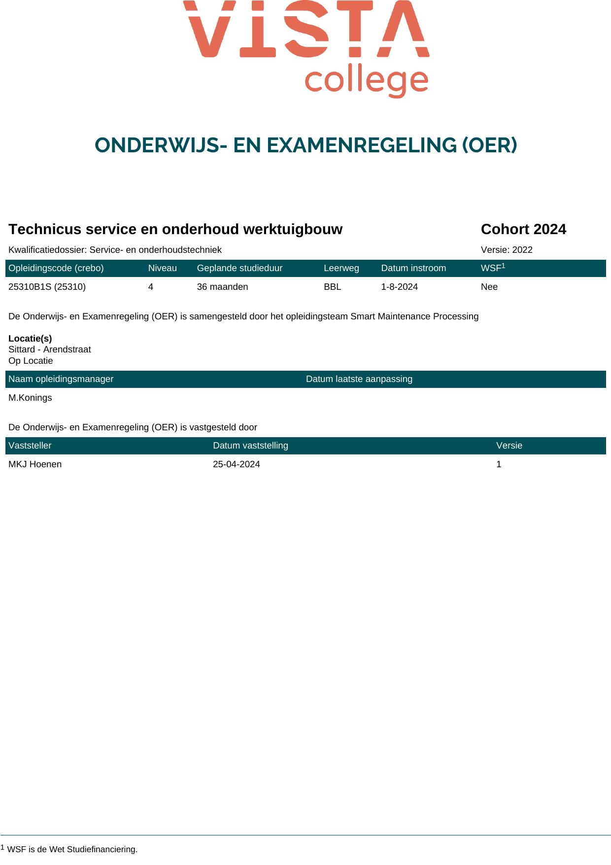 Technicus service en onderhoud werktuigbouw 25310B1S in cohort 2024-2025