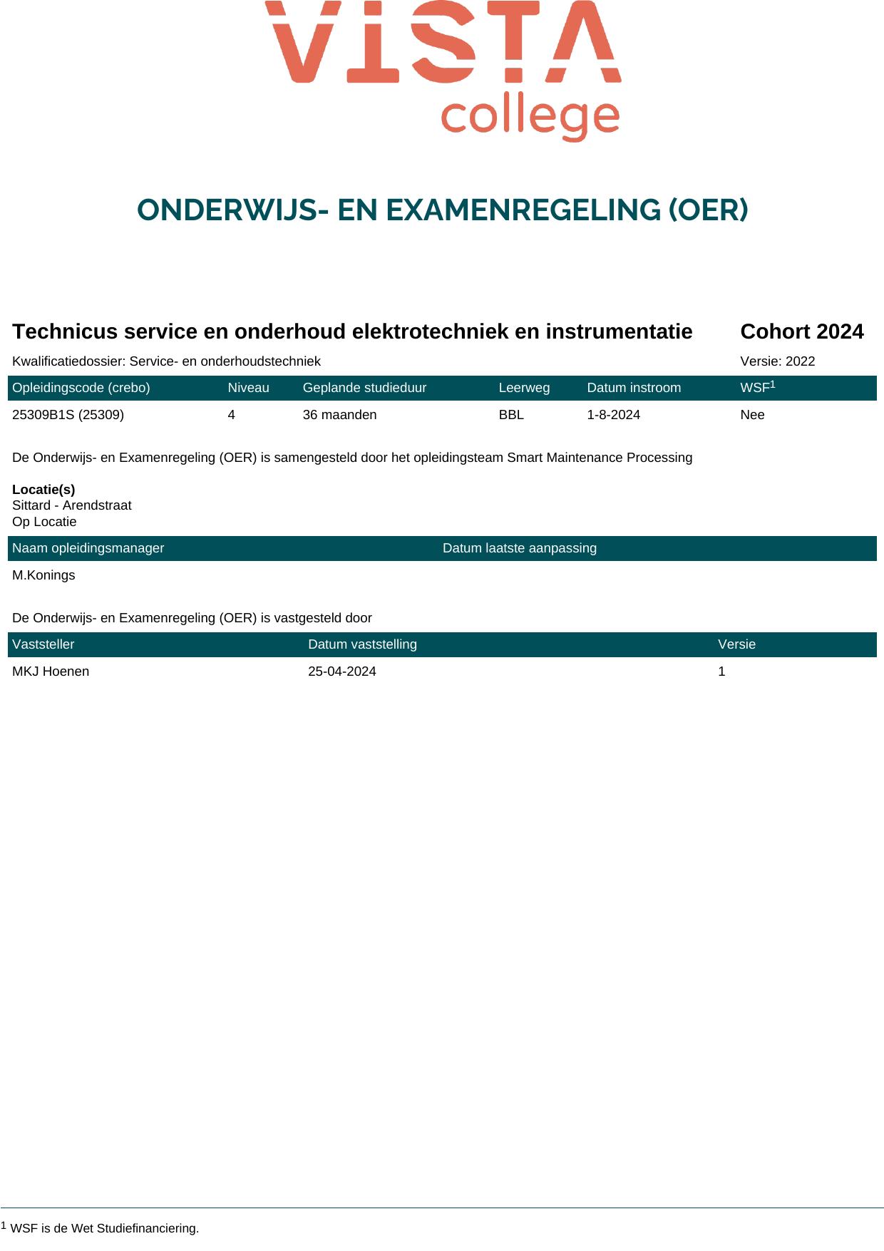 Eerste monteur service en onderhoud elektrotechniek en instrumentatie 25304O1S in cohort 2024-2025