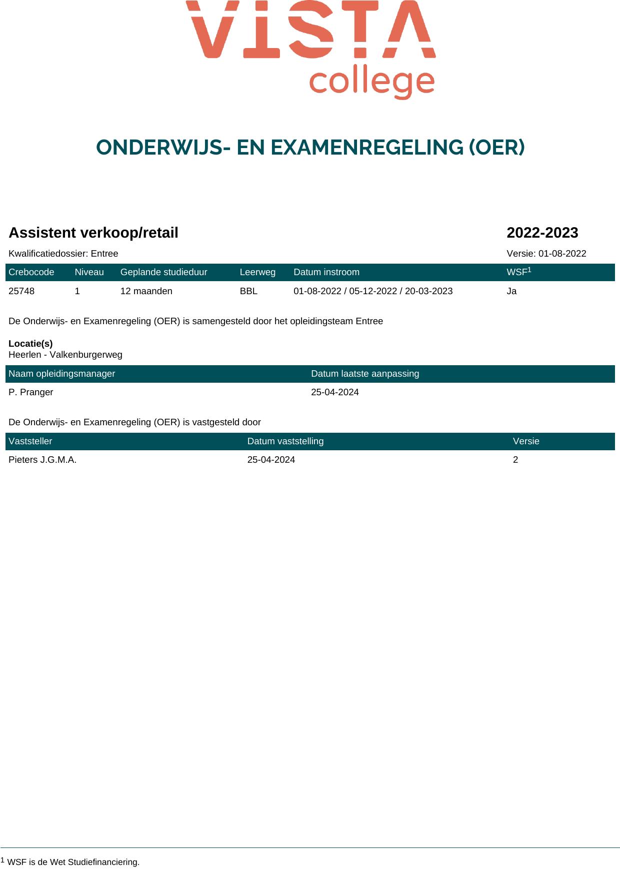 Assistent verkoop/retail 25748B1S in cohort 2022-2023