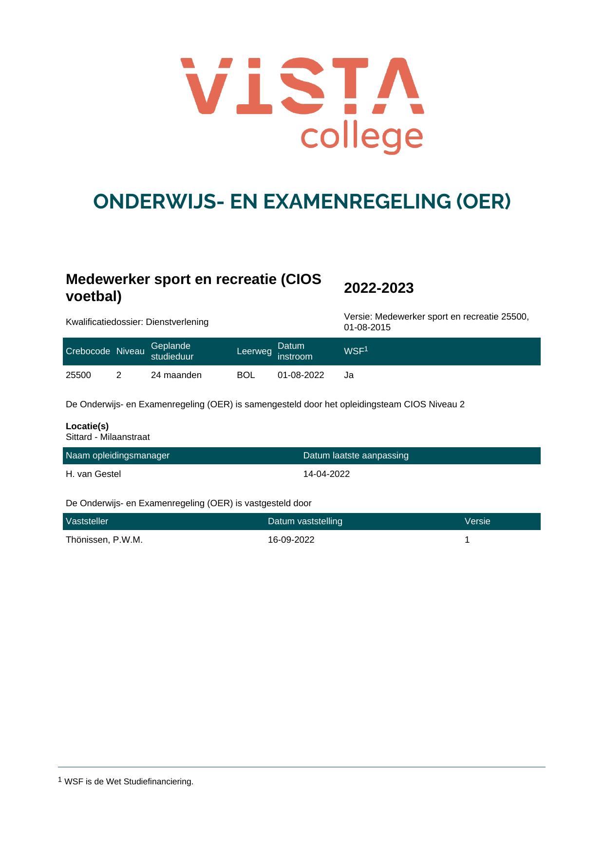 Medewerker sport en recreatie (CIOS voetbal) 2E25500BV2V3 in cohort 2022-2023