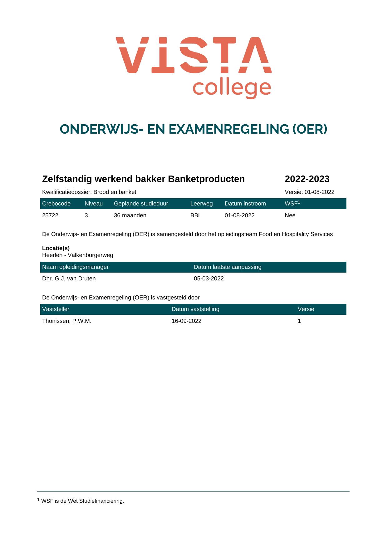 Zelfstandig werkend bakker Banketproducten 25722B3S in cohort 2022-2023