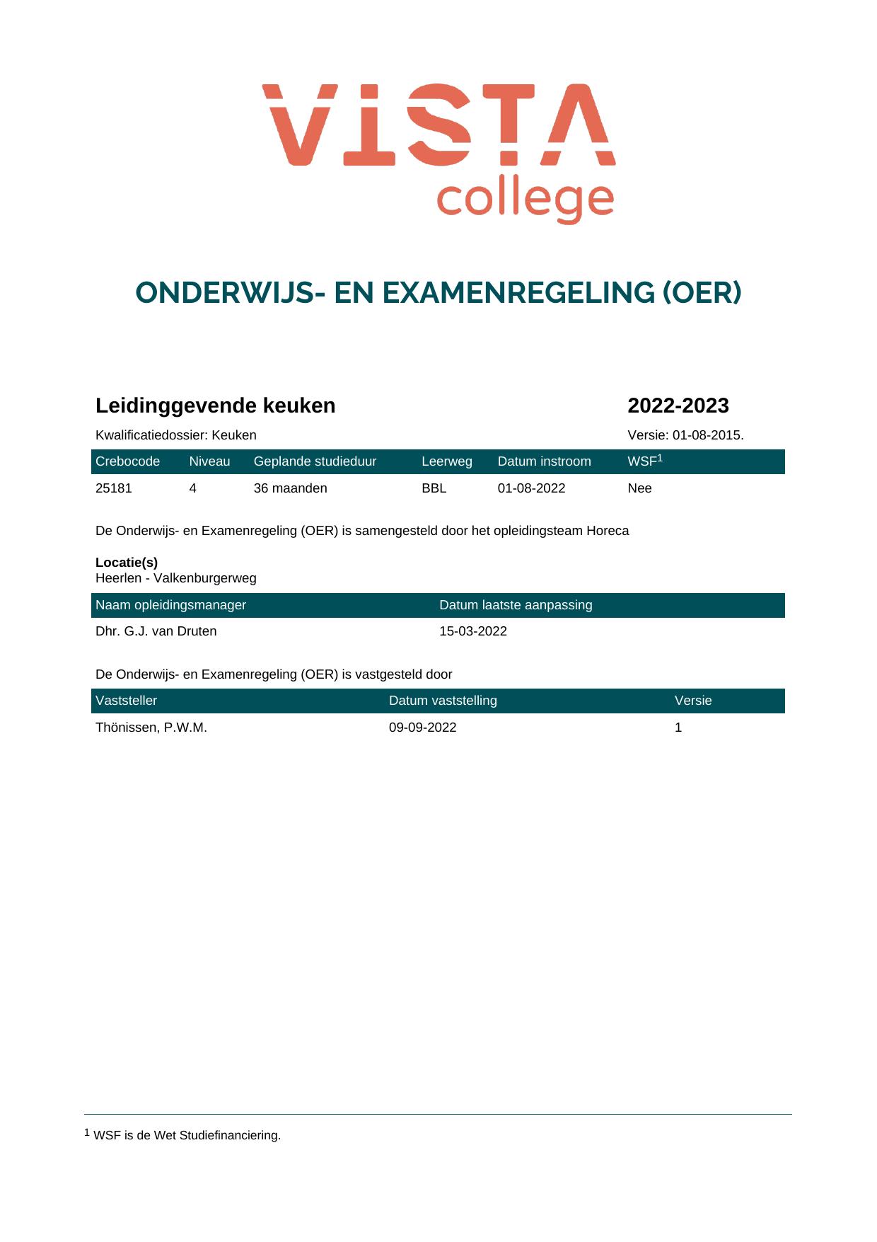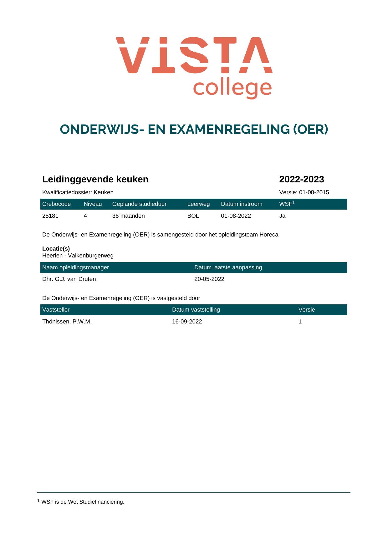 Leidinggevende keuken 25181B1S in cohort 2022-2023