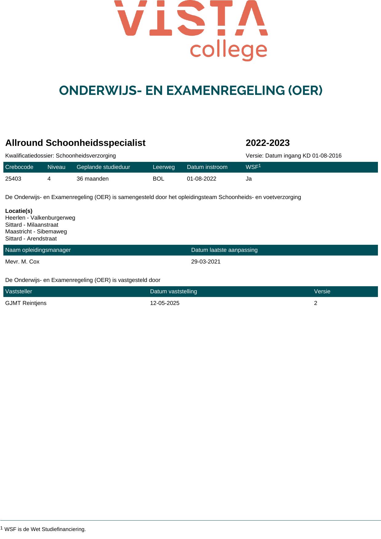 Allround Schoonheidsspecialist 2S25403BV3V1 in cohort 2022-2023