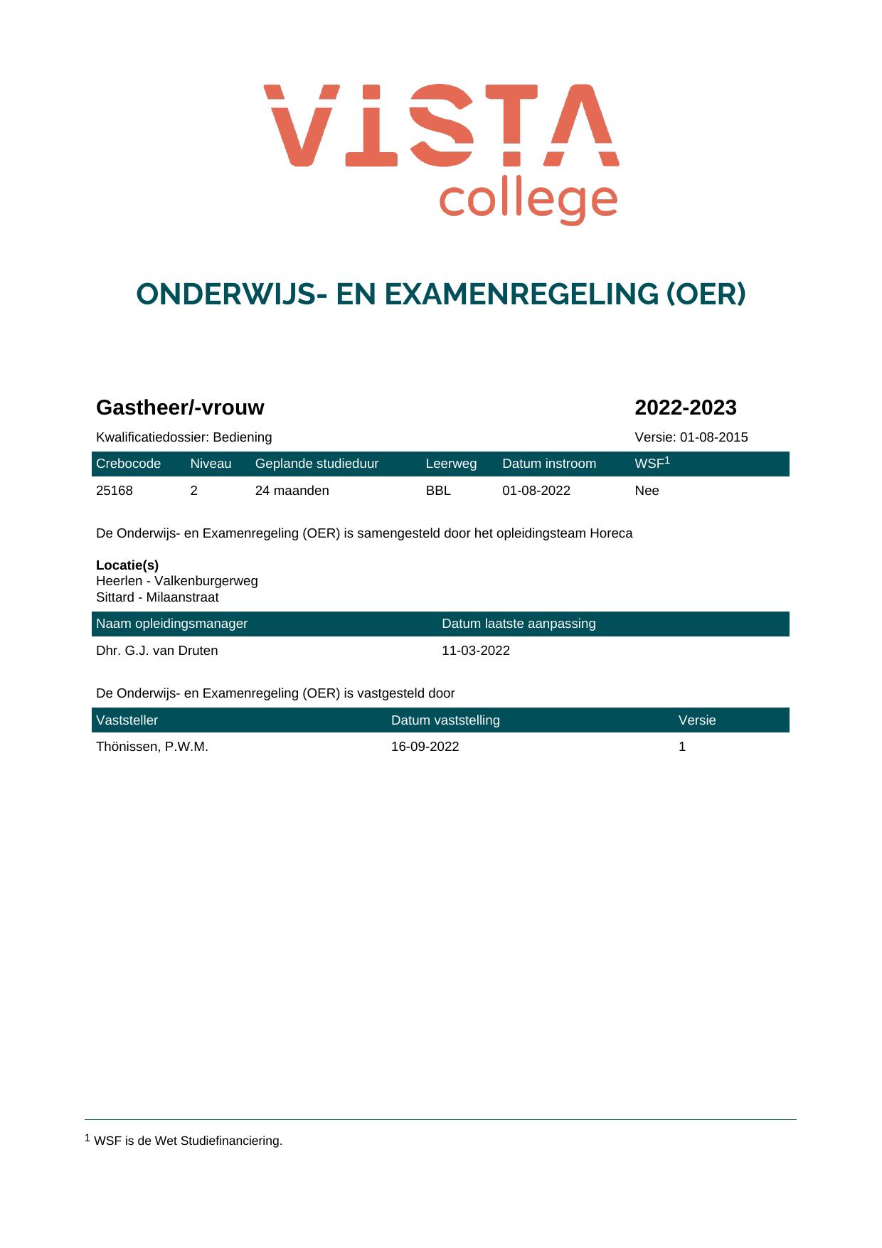 Gastheer/-vrouw 25168B1S in cohort 2022-2023