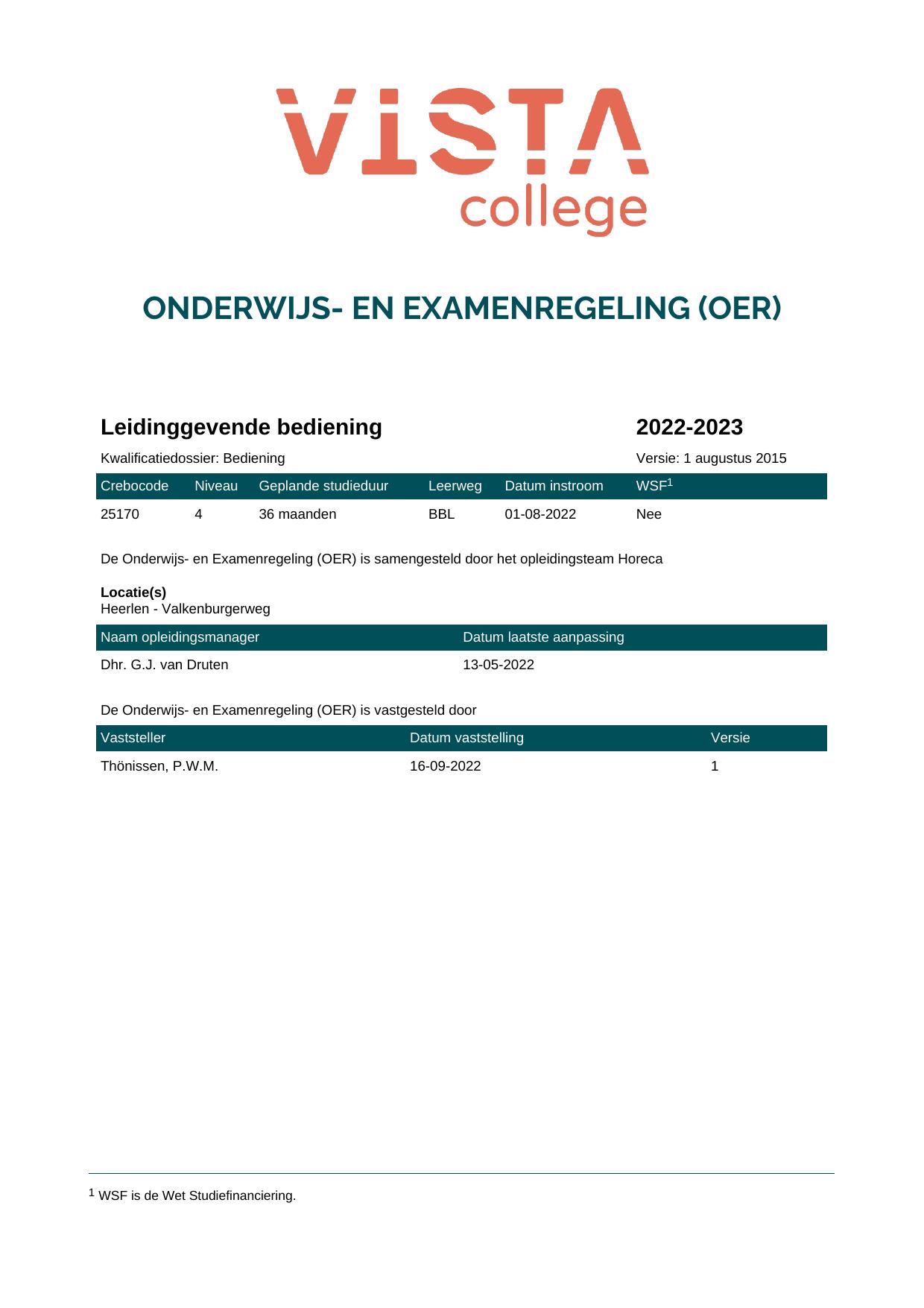 Leidinggevende bediening 25170B1S in cohort 2022-2023