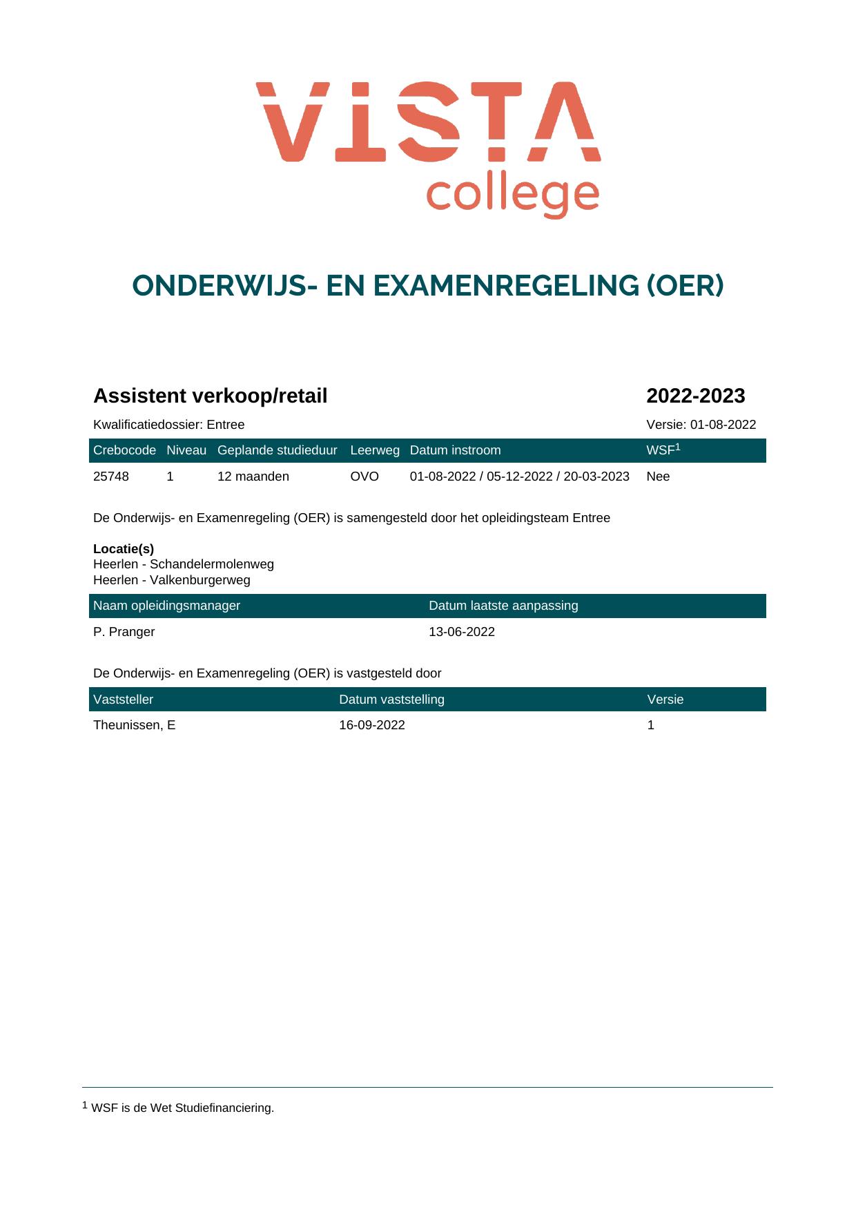 Assistent verkoop/retail OVO 25748OVO in cohort 2022-2023