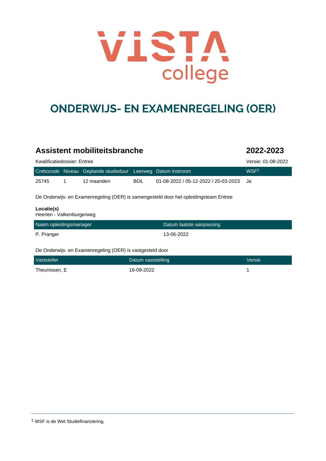 Assistent mobiliteitsbranche 25745O1S in cohort 2022-2023