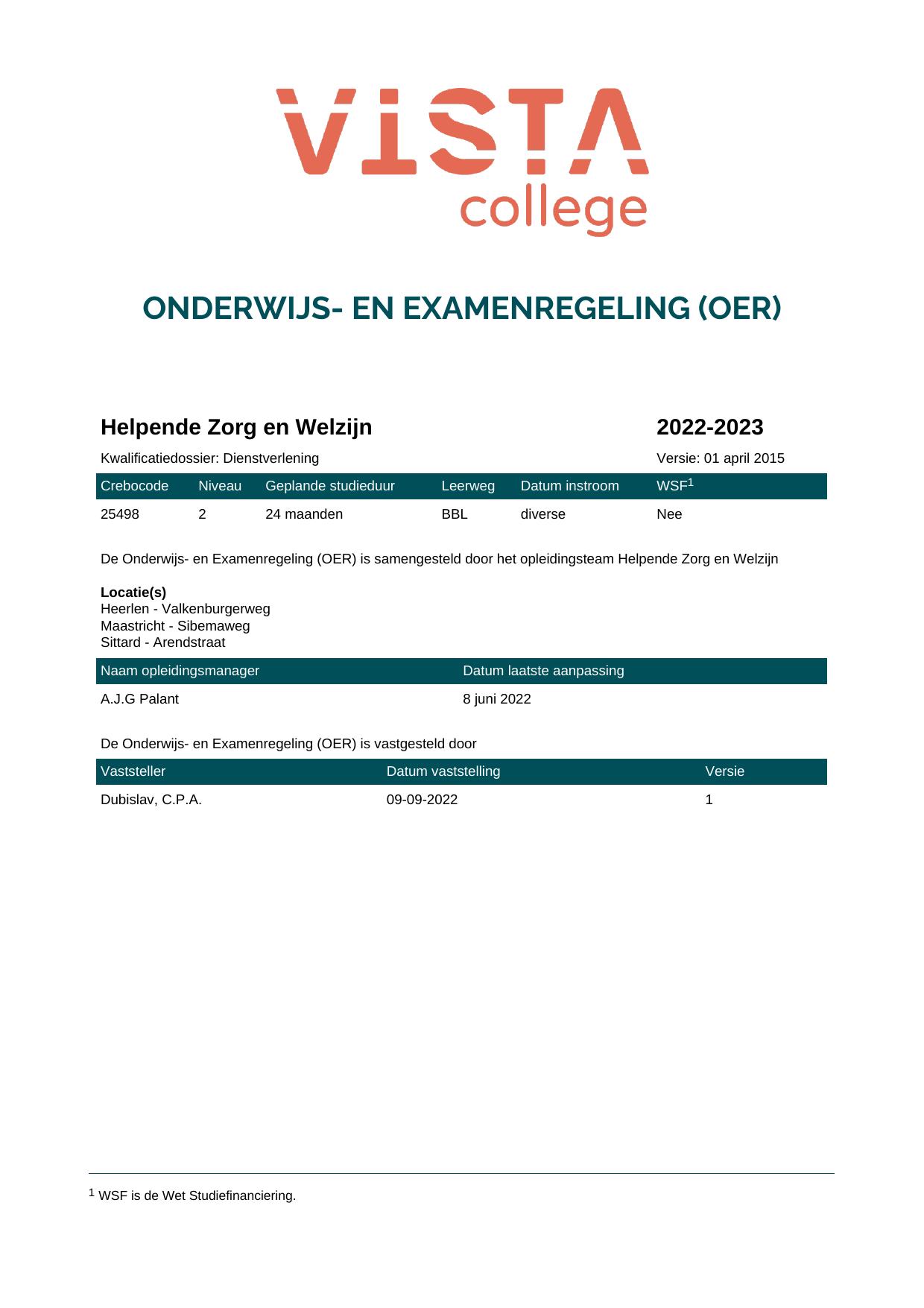 Helpende Zorg en Welzijn 25498BBL in cohort 2022-2023