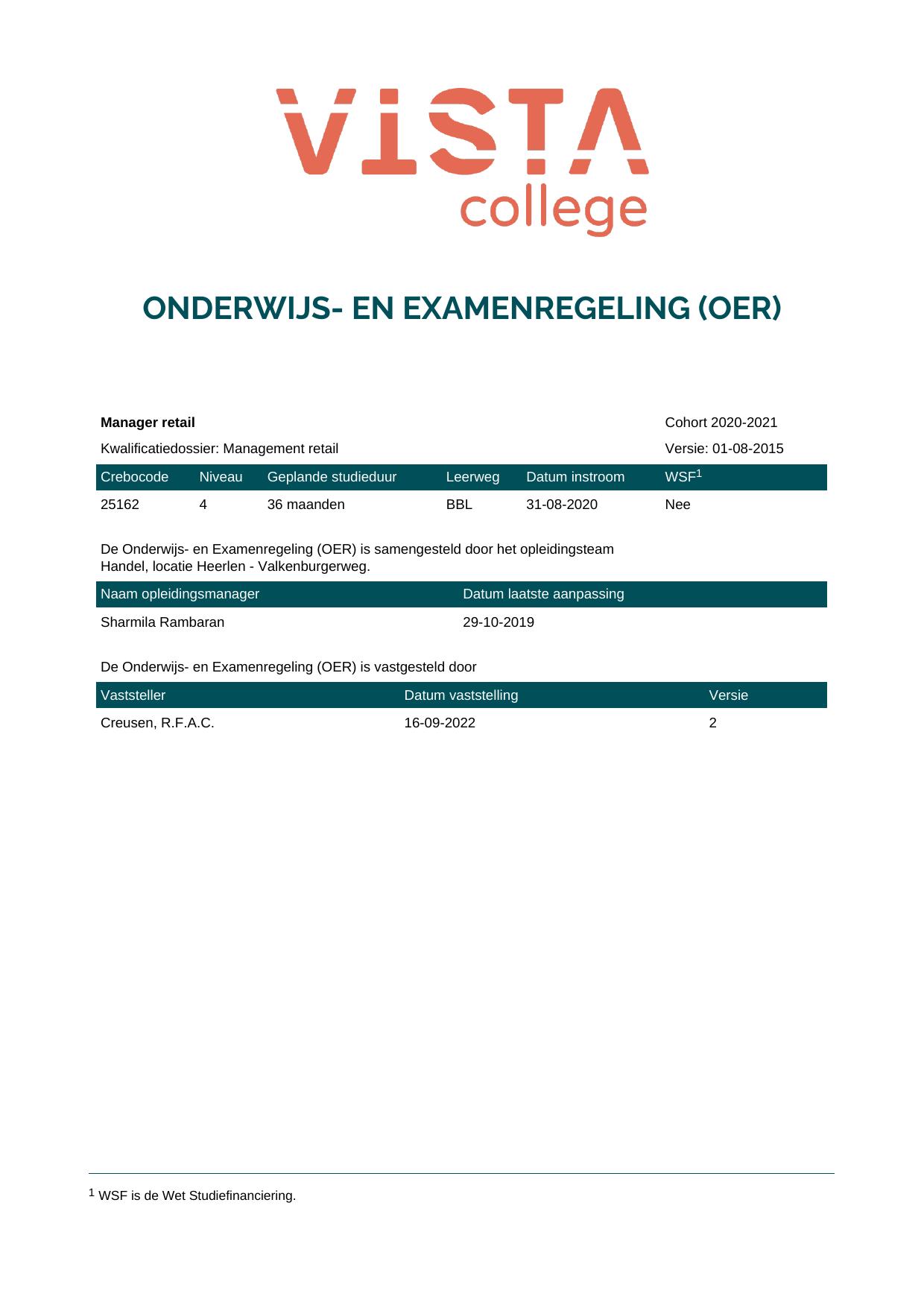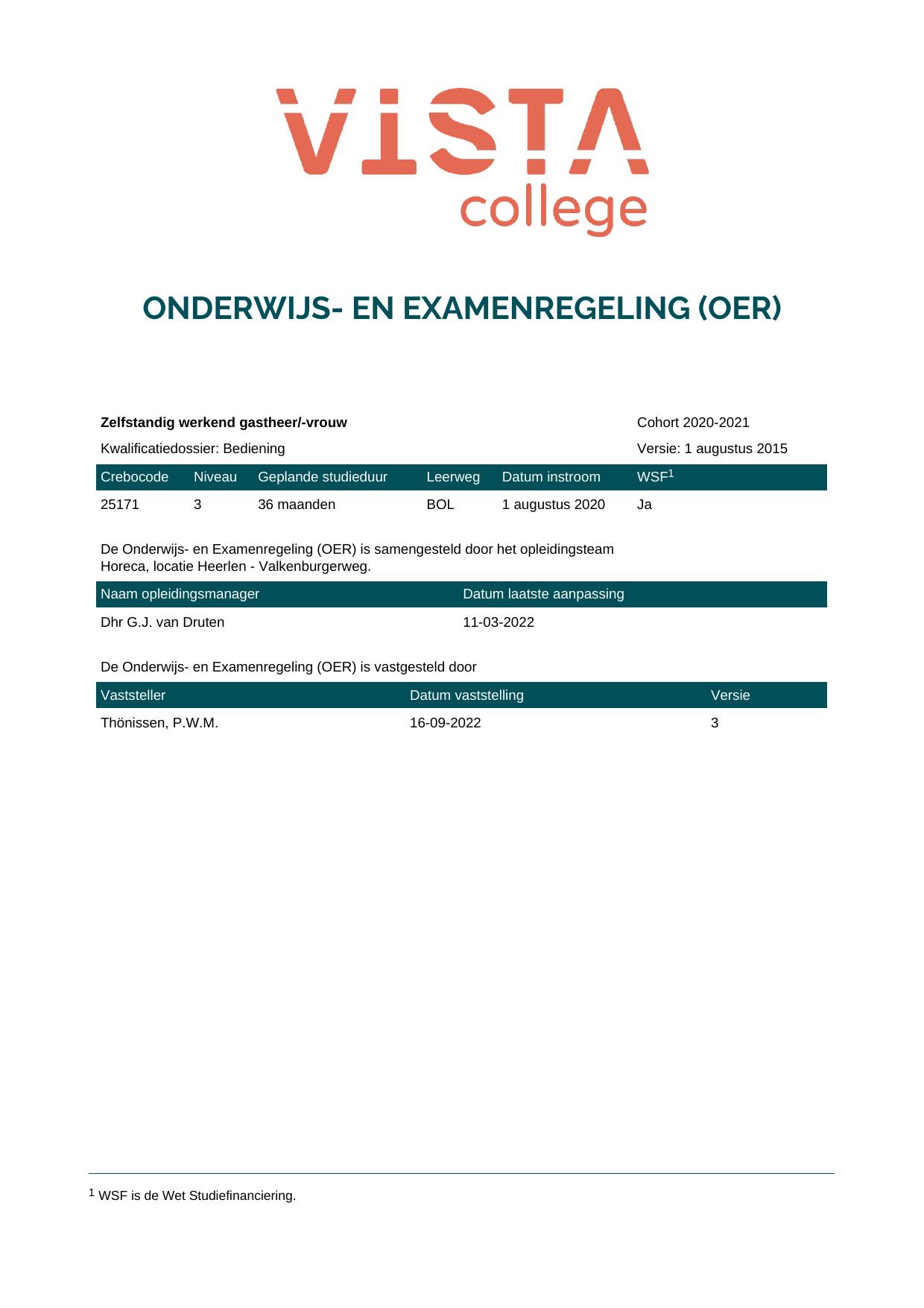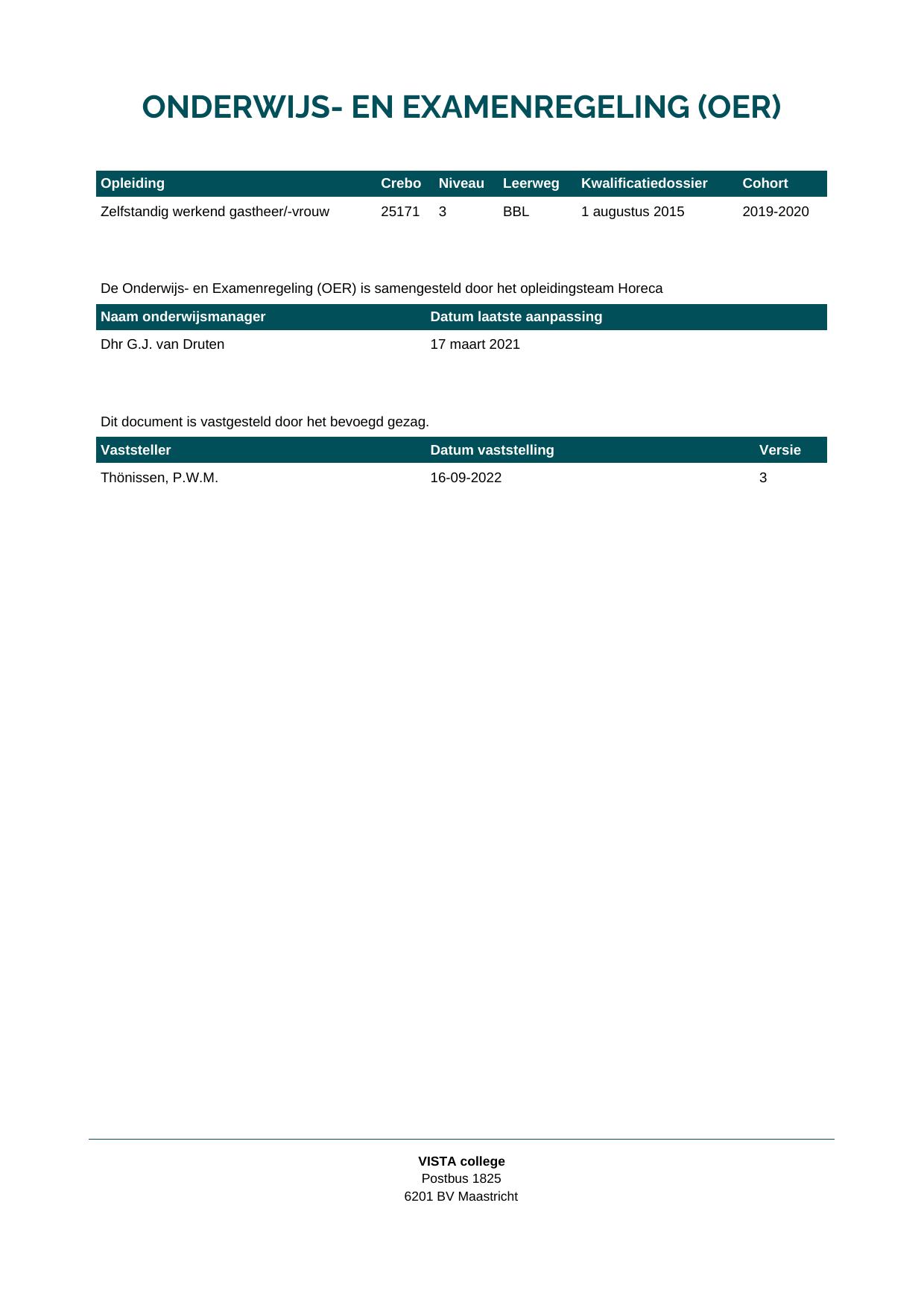 Zelfstandig werkend gastheer/-vrouw 25171O1S in cohort 2020-2021
