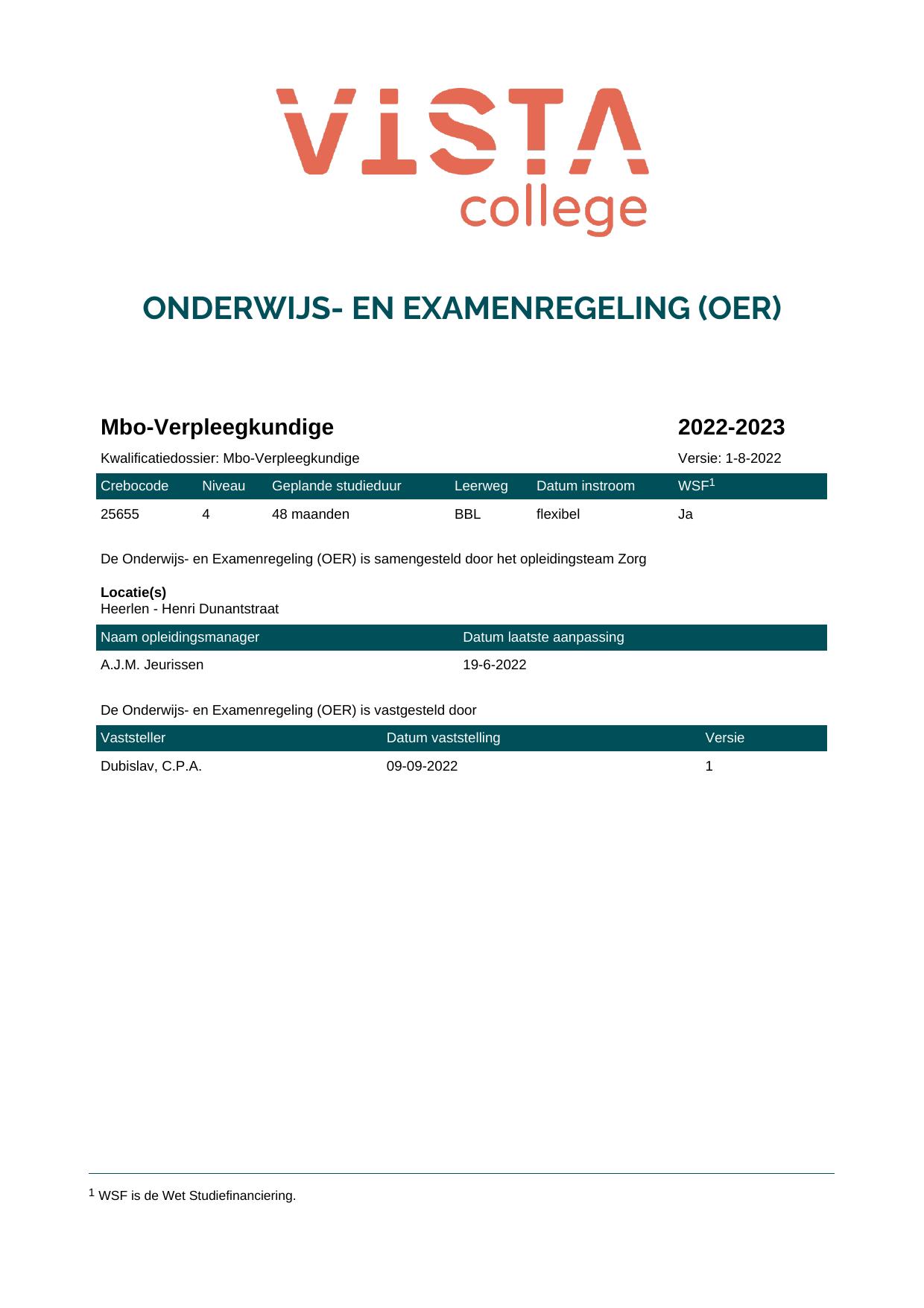 Mbo-Verpleegkundige 25655O1S in cohort 2022-2023