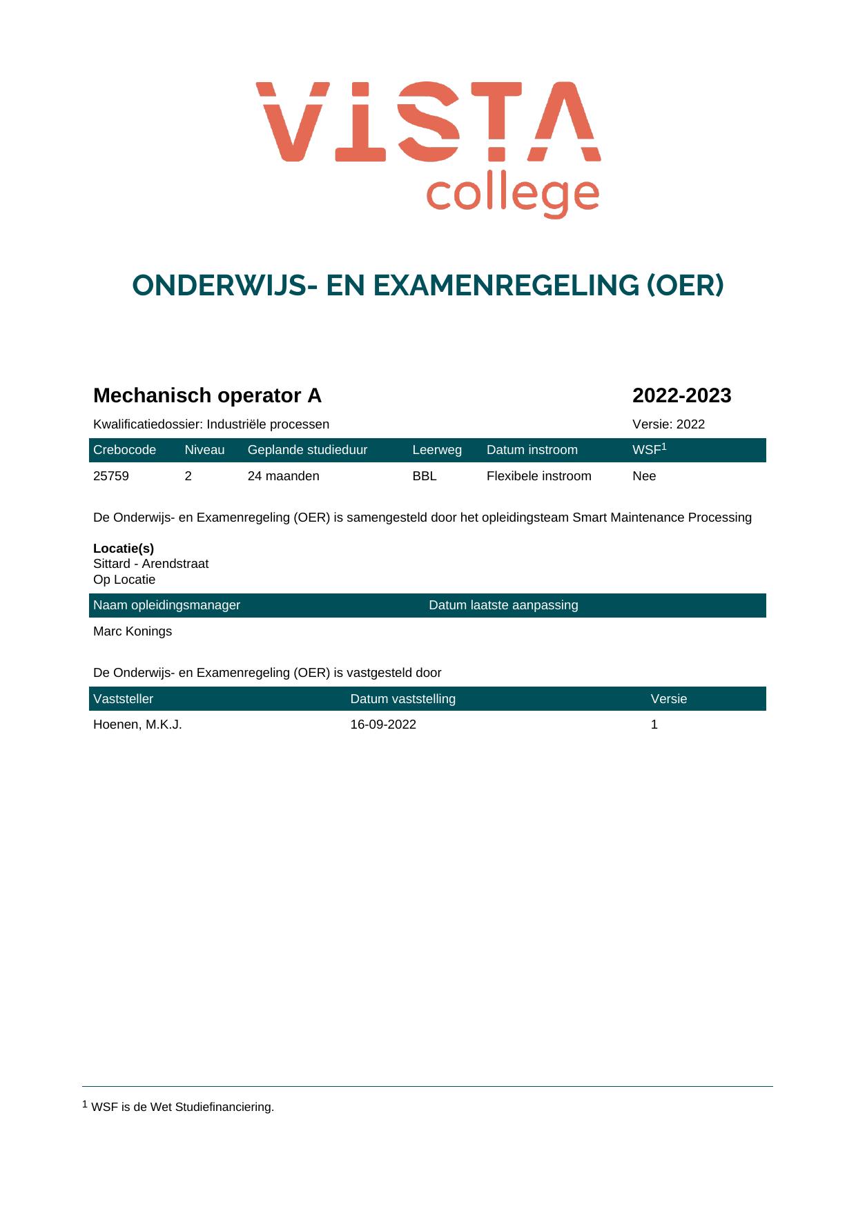 Mechanisch operator A 25759B1E in cohort 2022-2023