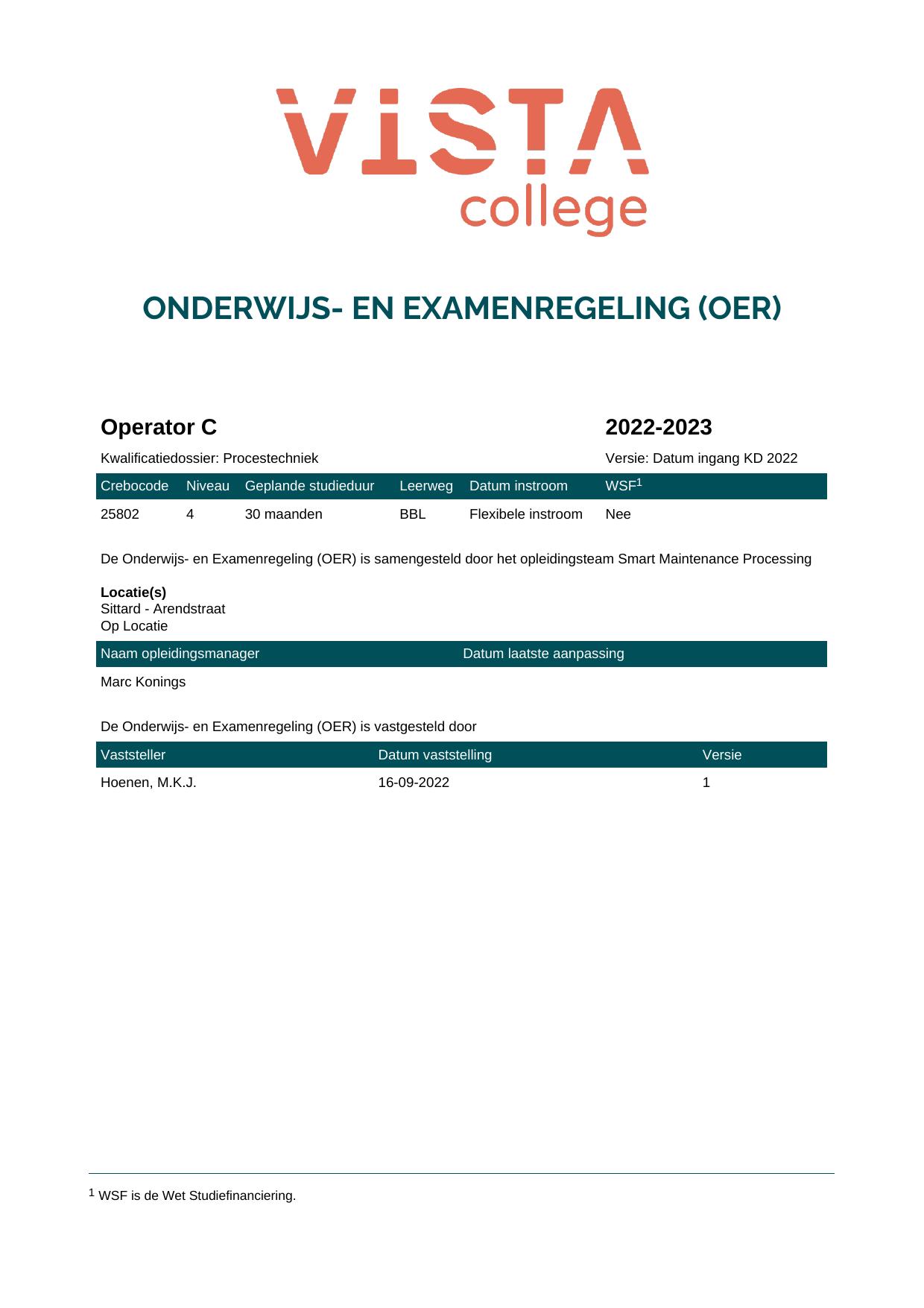 Mechanisch operator B 25760B1E in cohort 2022-2023