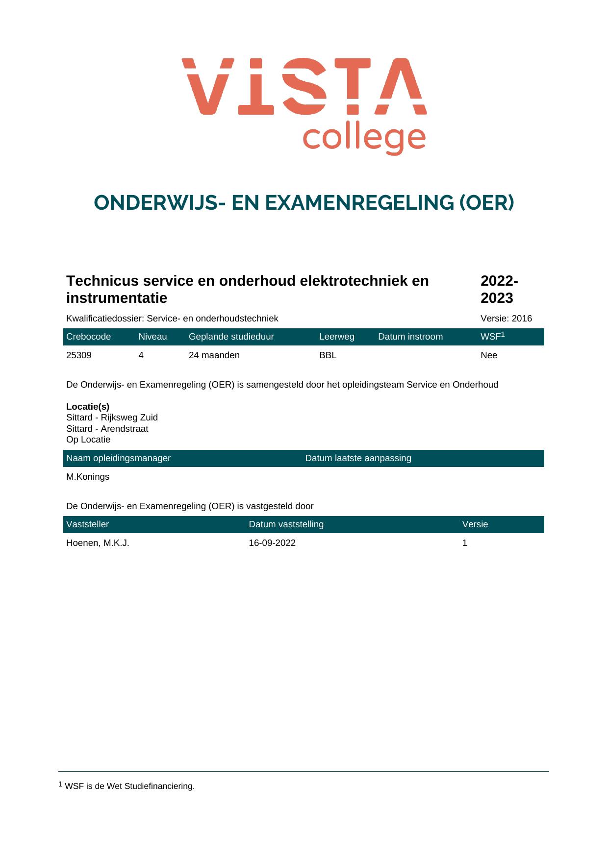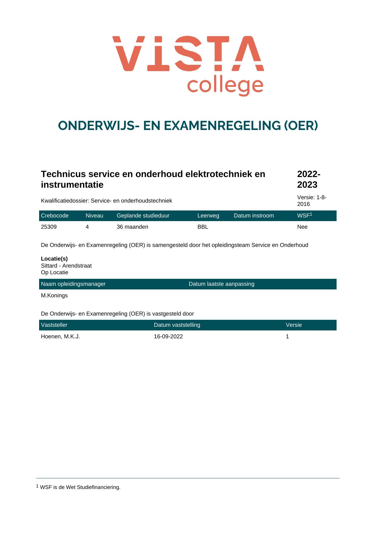 Technicus service en onderhoud elektrotechniek en instrumentatie 25309B1S in cohort 2022-2023