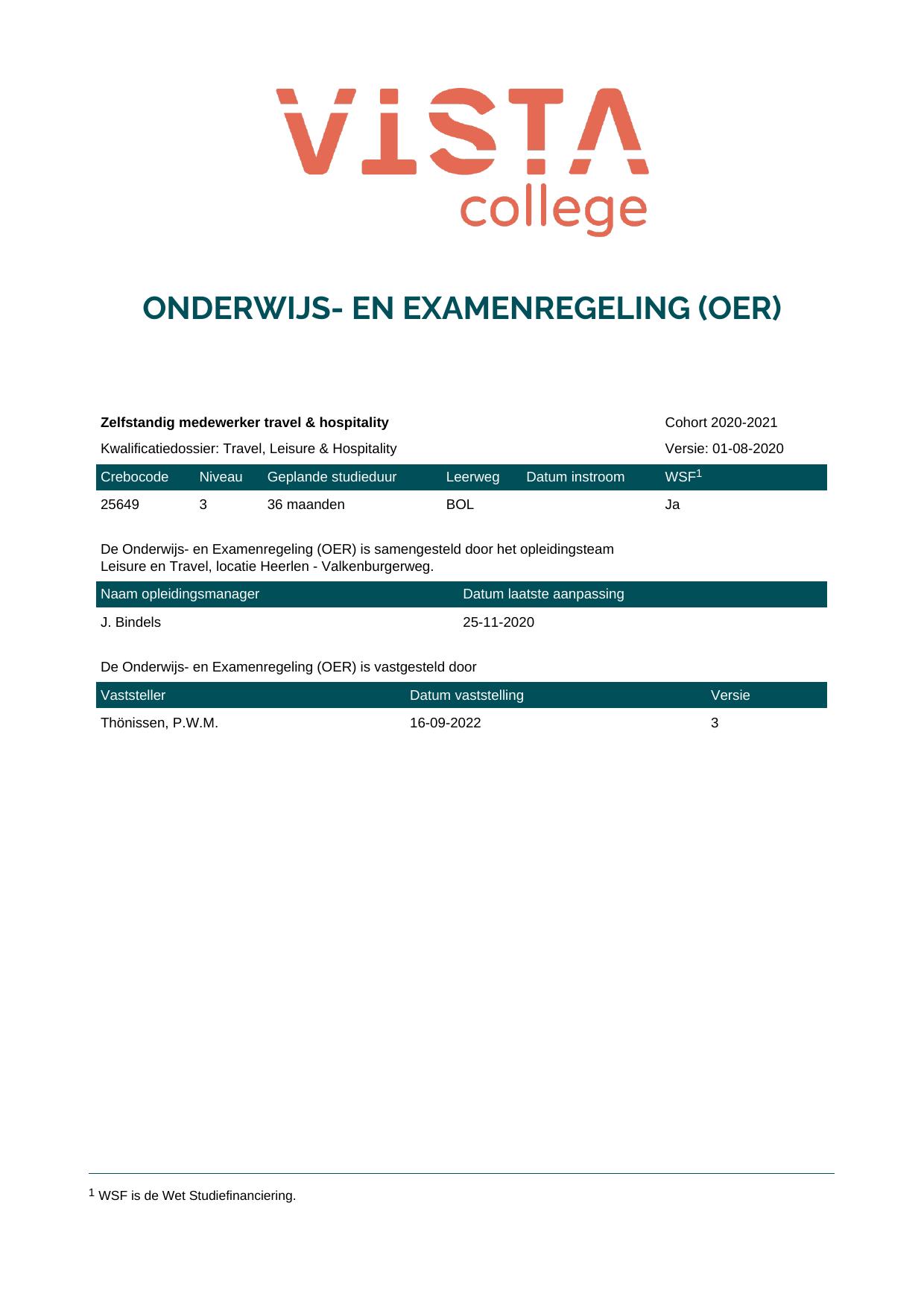 Leidinggevende travel & hospitality 1T25647BV3V1 in cohort 2020-2021