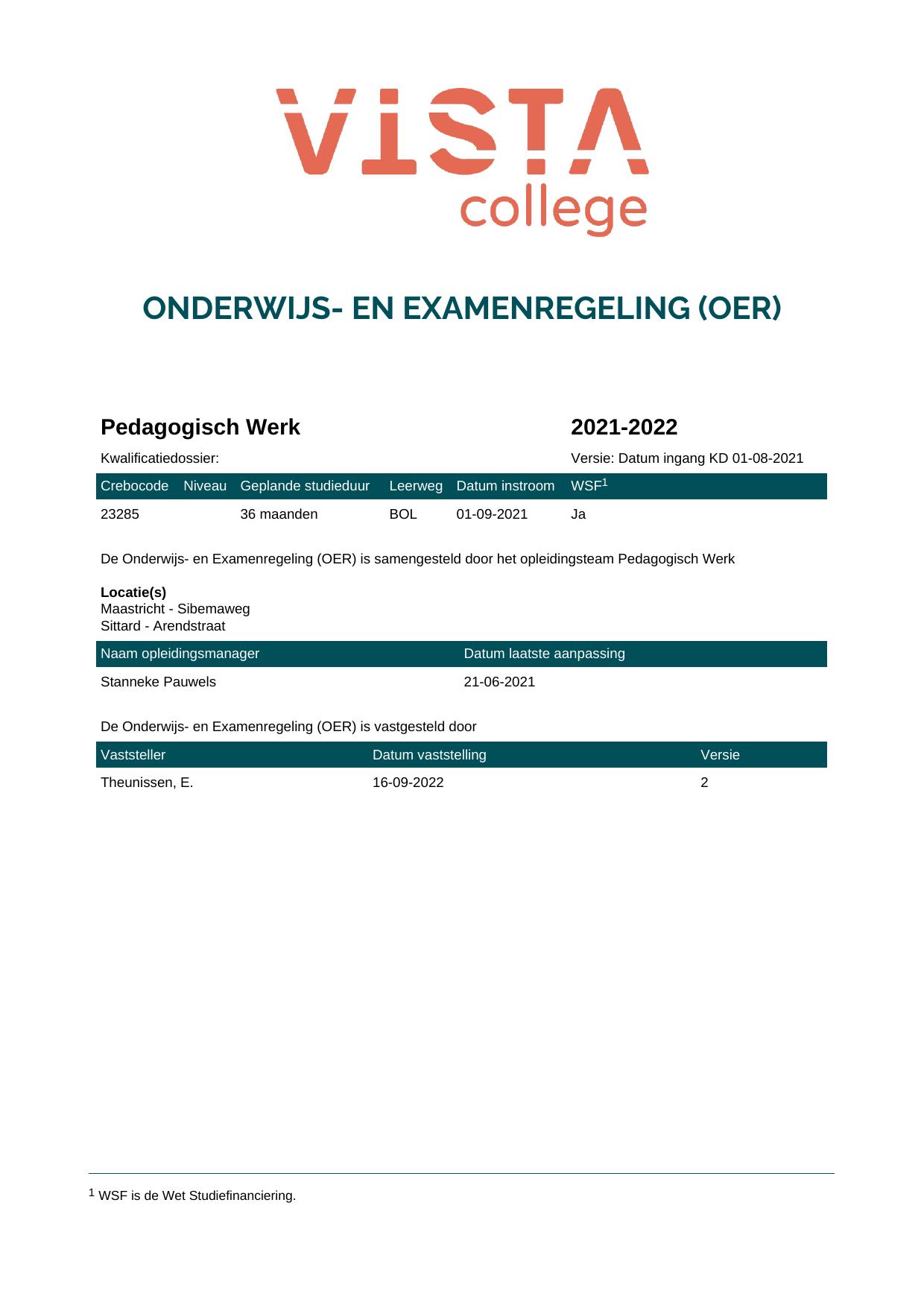 Pedagogisch Werk 4P23285BV3V1 in cohort 2021-2022