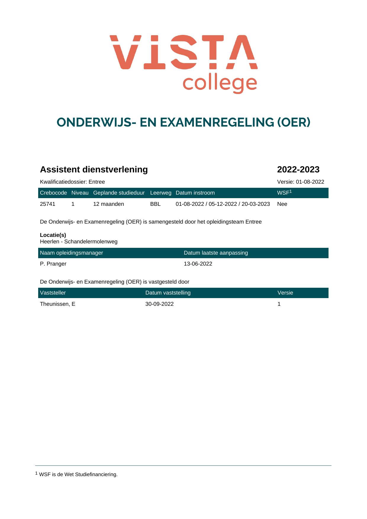 Assistent dienstverlening 25741B1S in cohort 2022-2023
