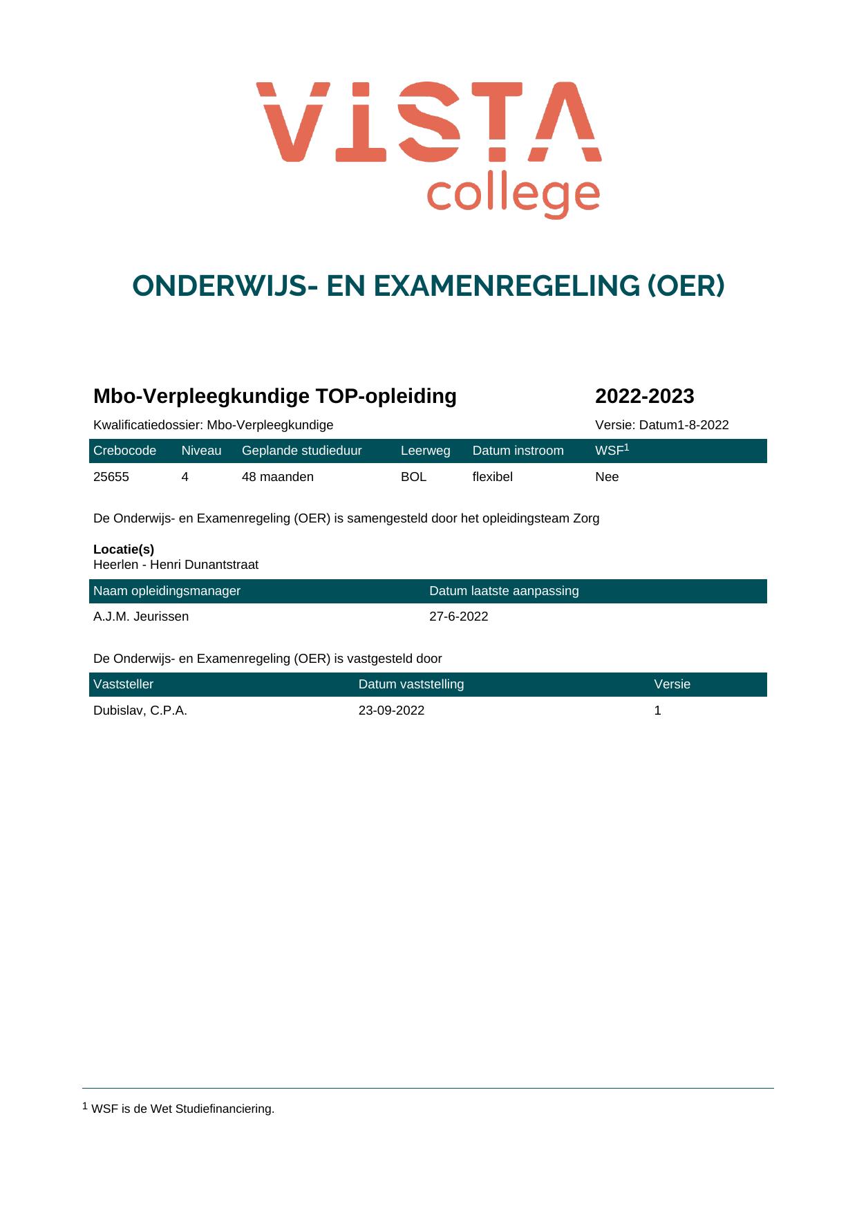 Mbo-Verpleegkundige TOP-opleiding 25655O5S in cohort 2022-2023
