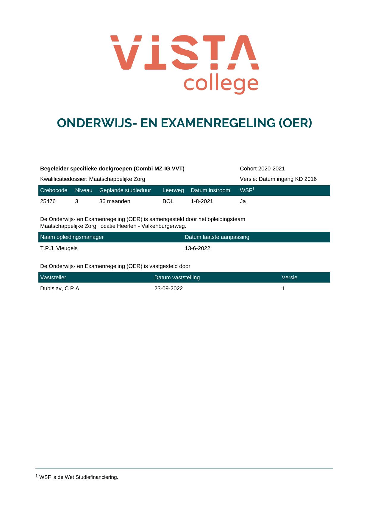 Begeleider specifieke doelgroepen (Combi MZ-IG VVT) 25476O2S in cohort 2020-2021