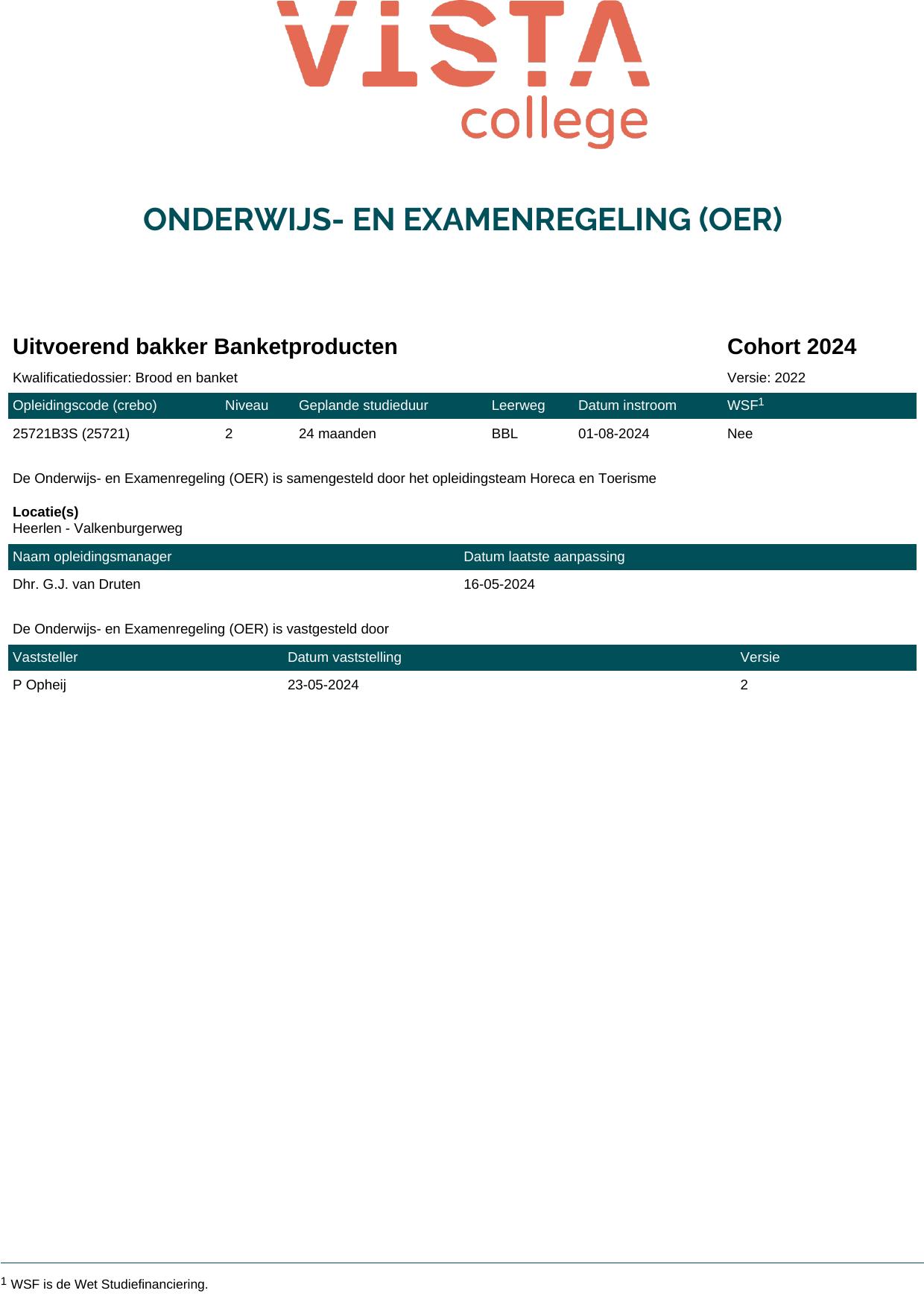 Uitvoerend bakker Banketproducten 25721B3S in cohort 2024-2025