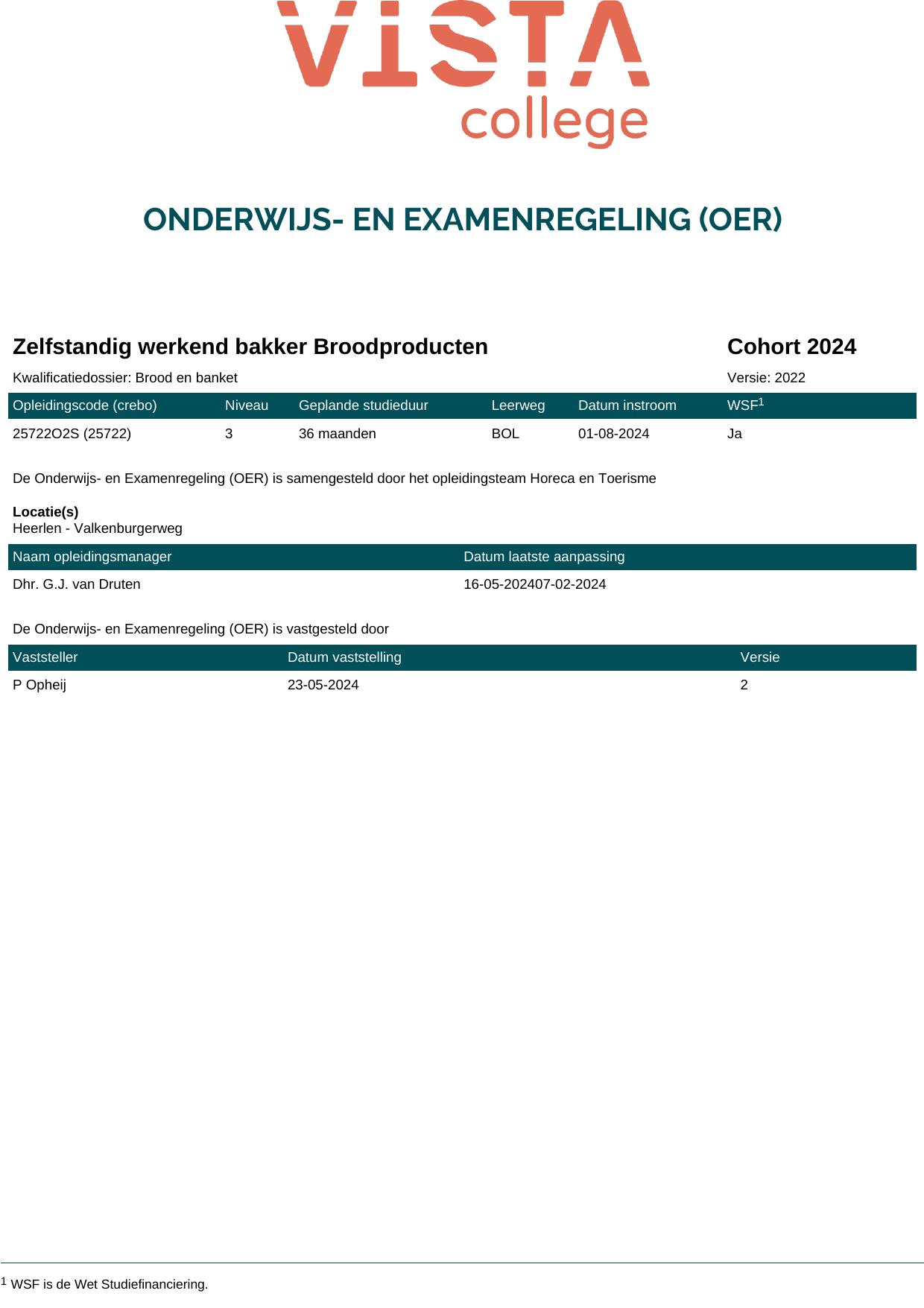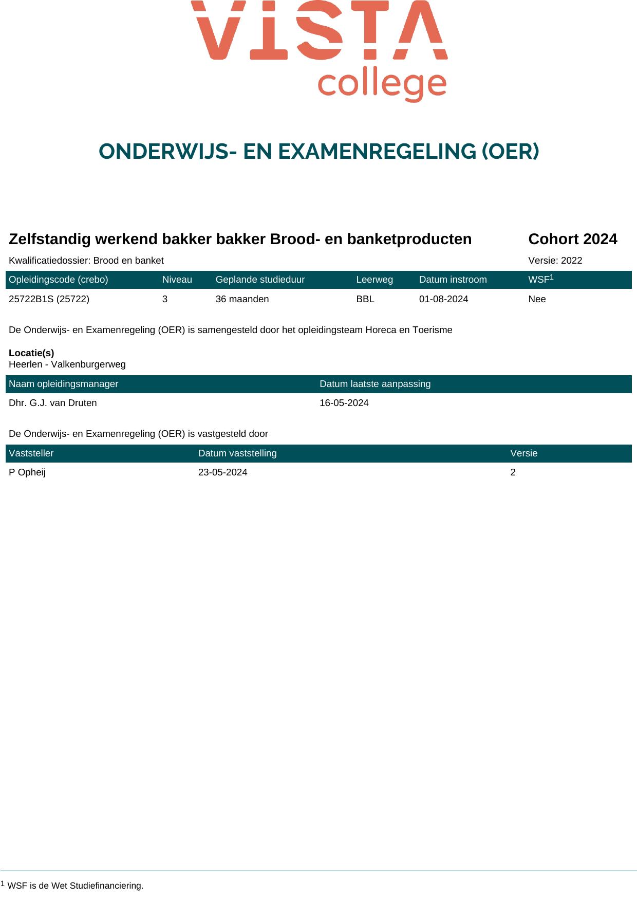 Zelfstandig werkend bakker bakker Brood- en banketproducten 25722B1S in cohort 2024-2025