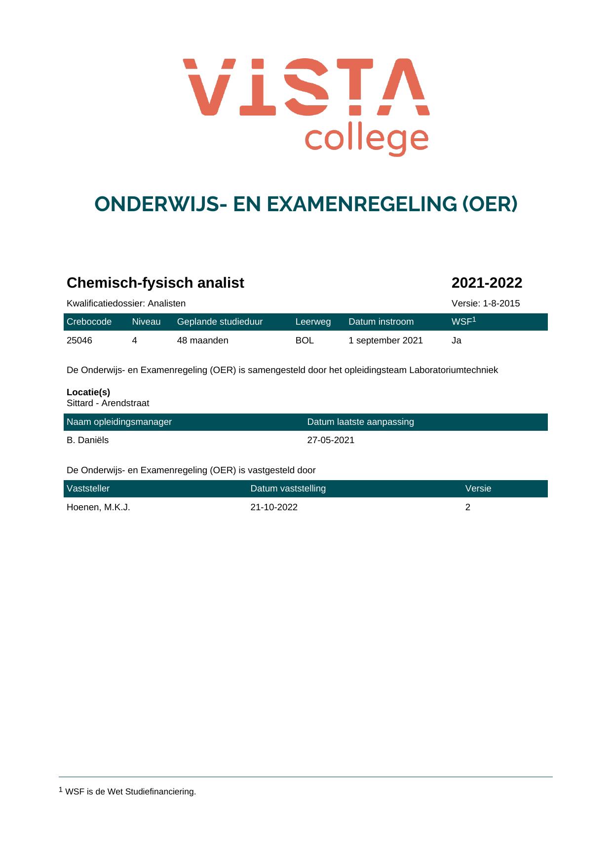 Chemisch-fysisch analist 25046O1S in cohort 2021-2022