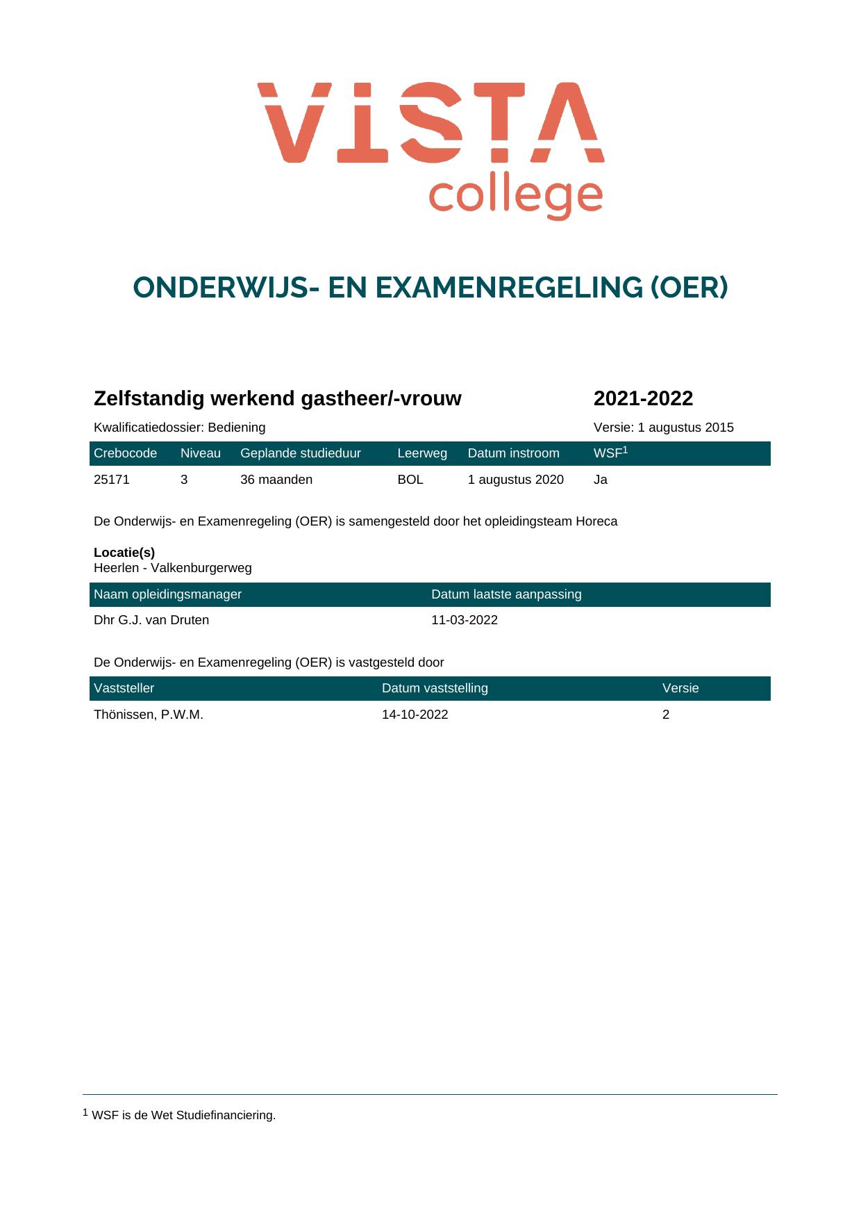 Zelfstandig werkend gastheer/-vrouw 25171O1S in cohort 2021-2022