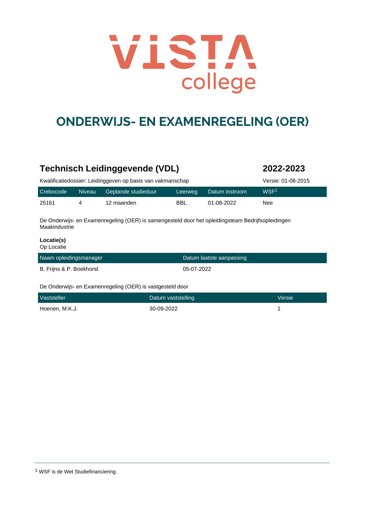 Technisch Leidinggevende (VDL) 25161B1EVDL in cohort 2022-2023