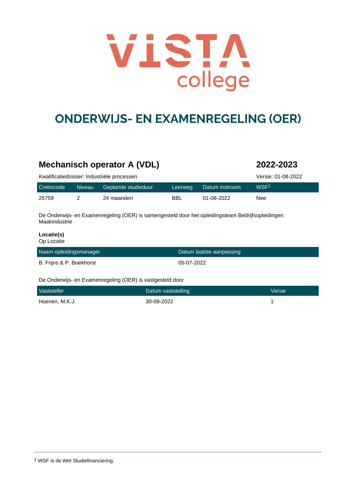 Mechanisch operator B (VDL) 25760B1EVDL in cohort 2022-2023