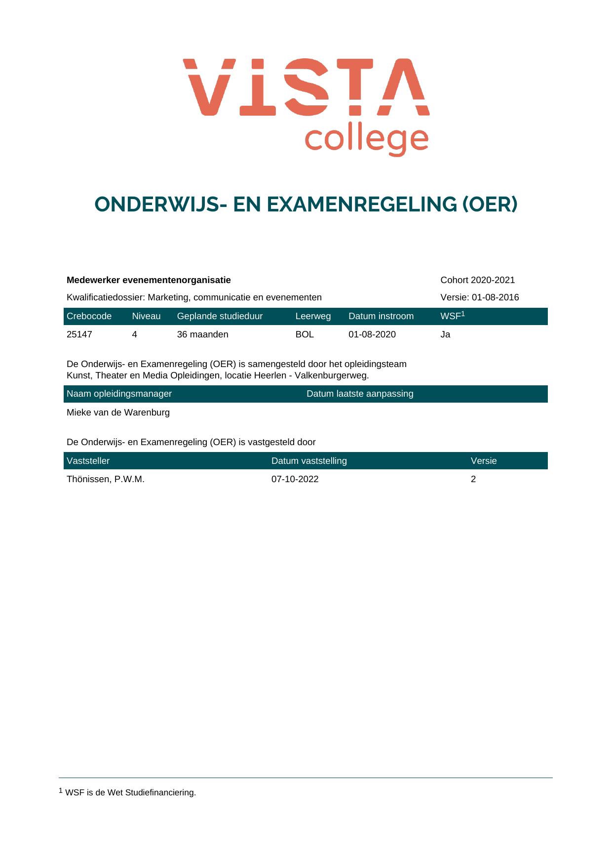 Medewerker evenementenorganisatie 25147O1S in cohort 2020-2021