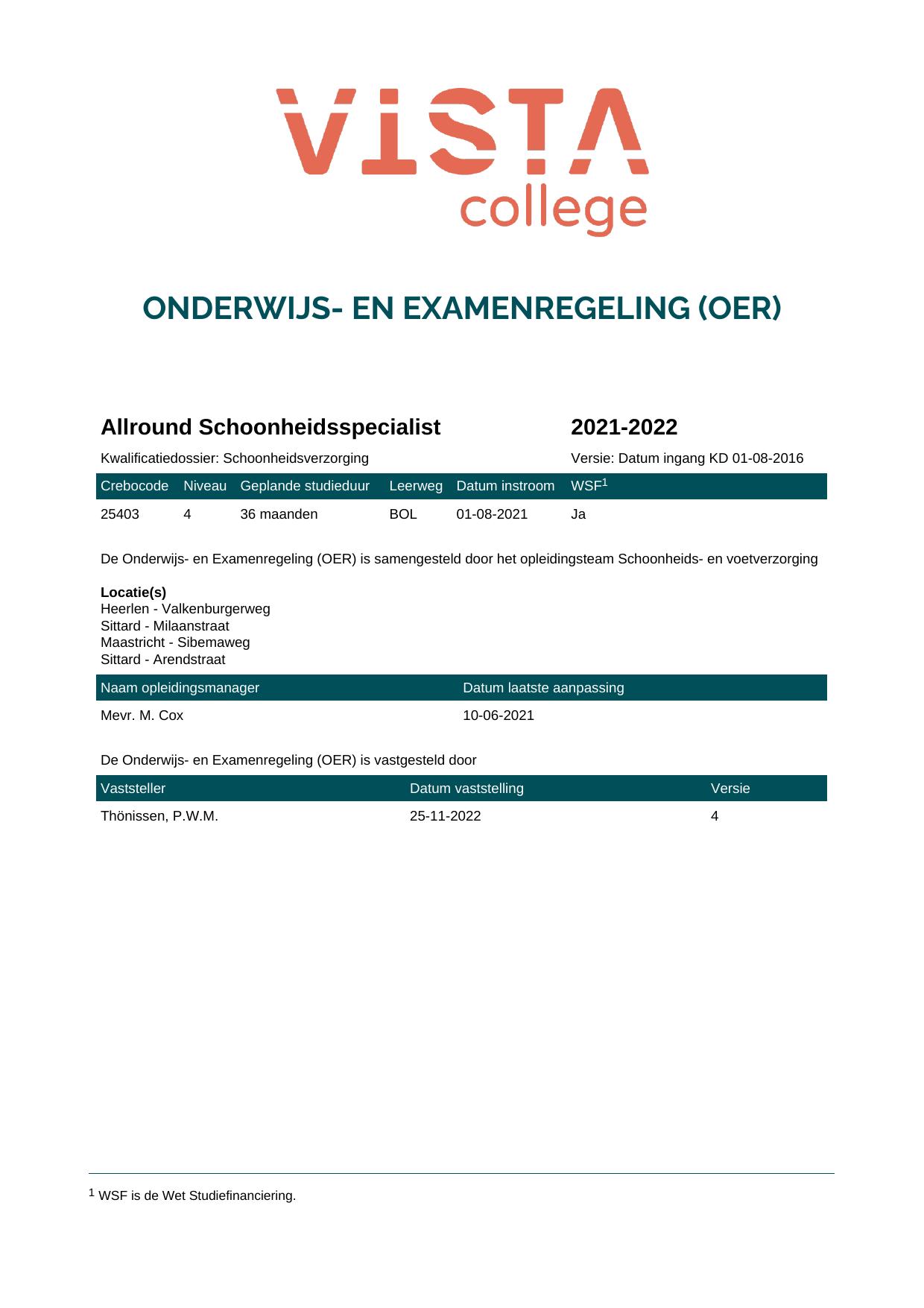 Allround Schoonheidsspecialist 2S25403BV3V1 in cohort 2021-2022
