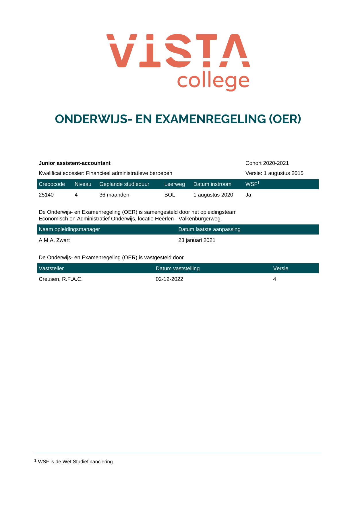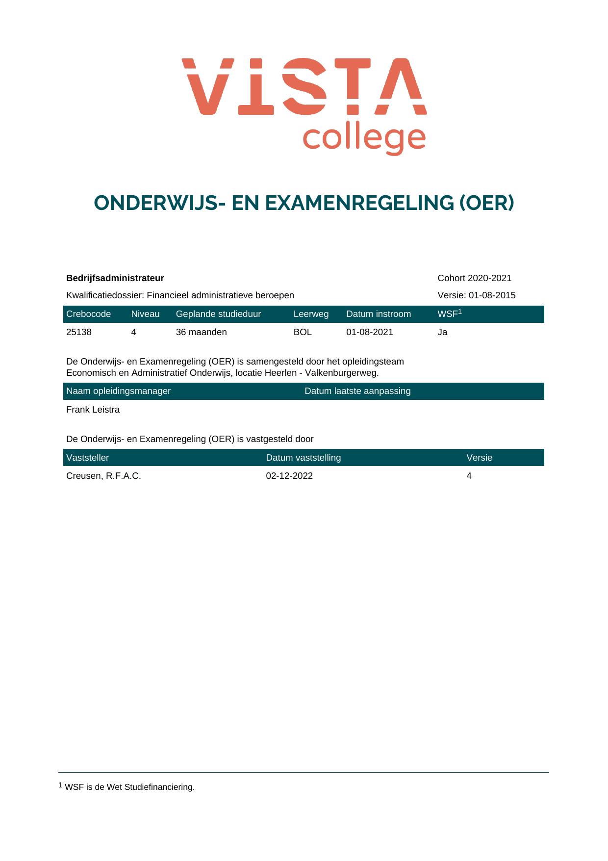 Bedrijfsadministrateur 25138O1S in cohort 2020-2021