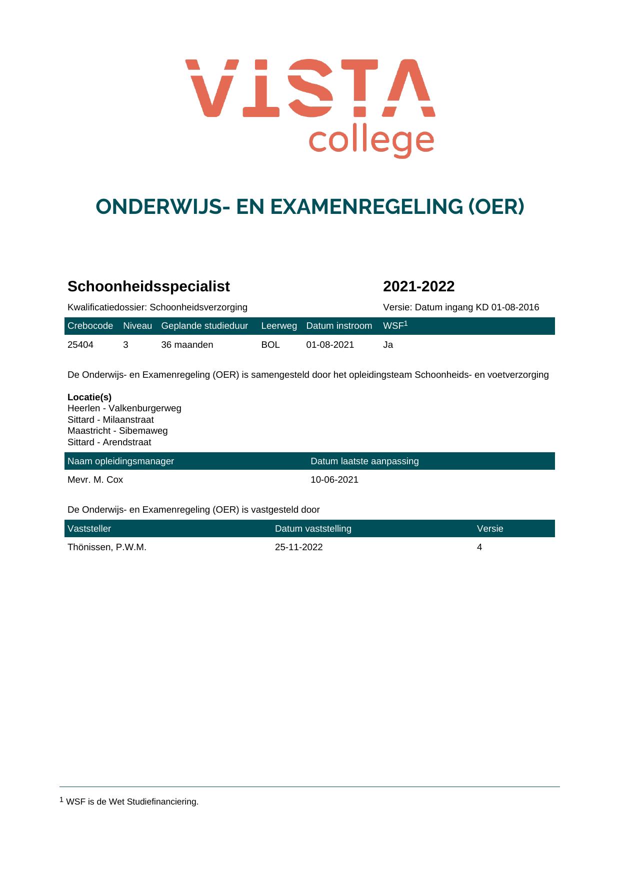 Schoonheidsspecialist 2S25404BV3V1 in cohort 2021-2022