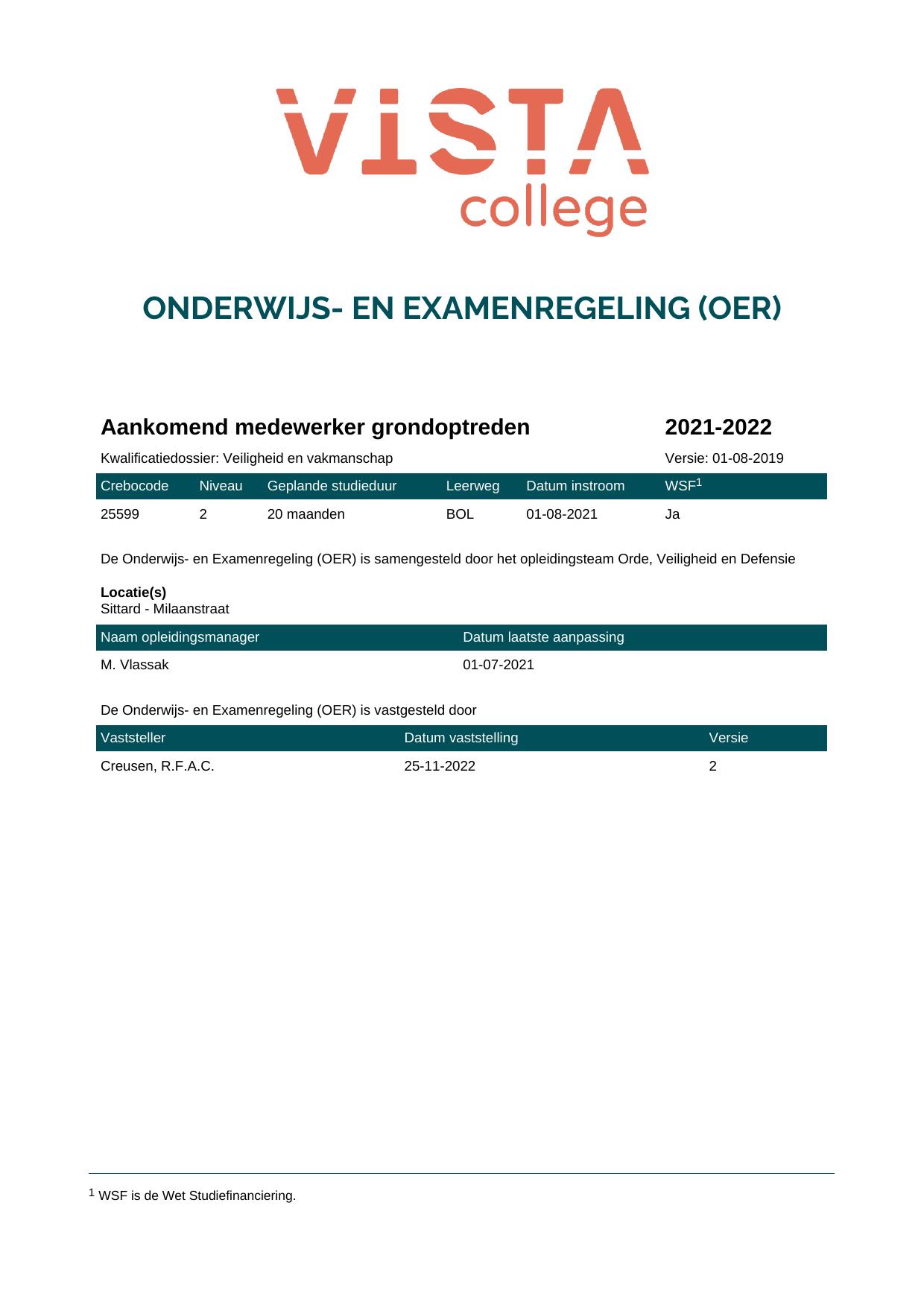 Aankomend medewerker grondoptreden 2V25599BV2V1 in cohort 2020-2021