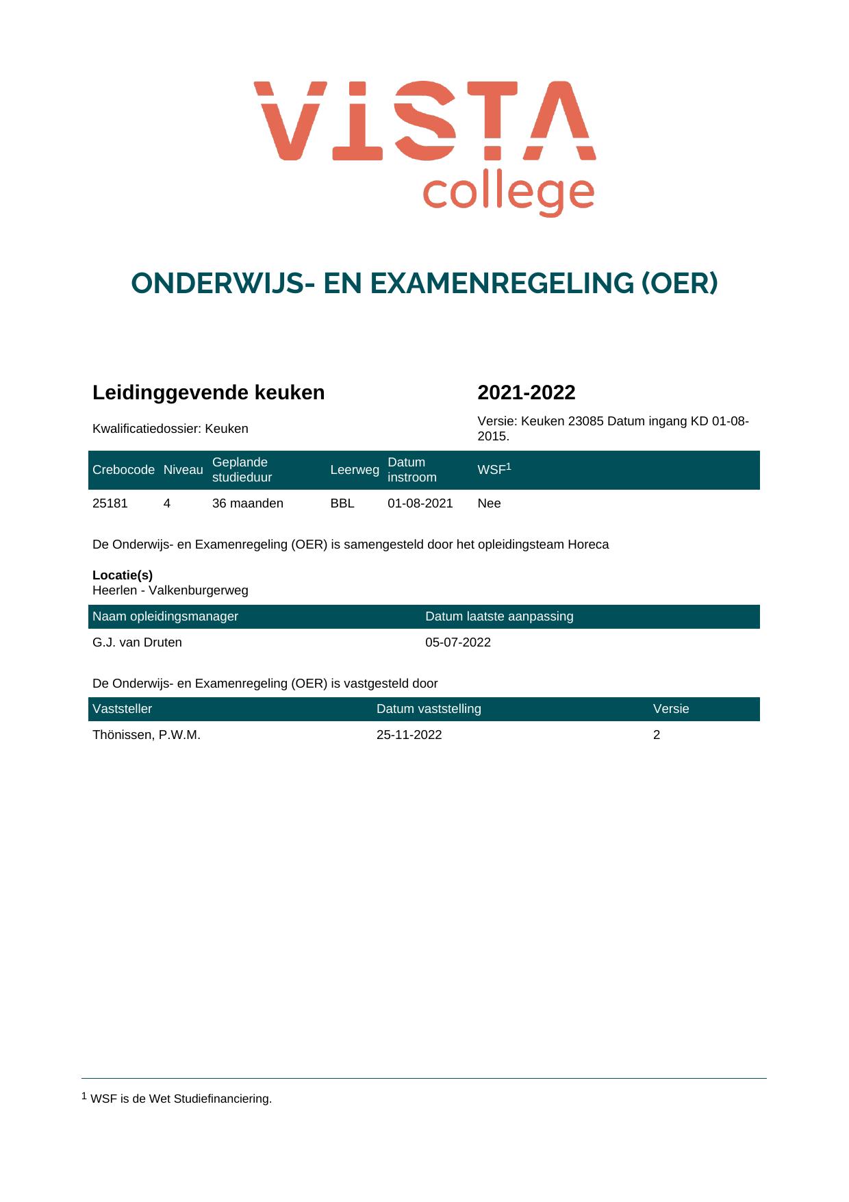 Leidinggevende keuken 25181B1S in cohort 2021-2022