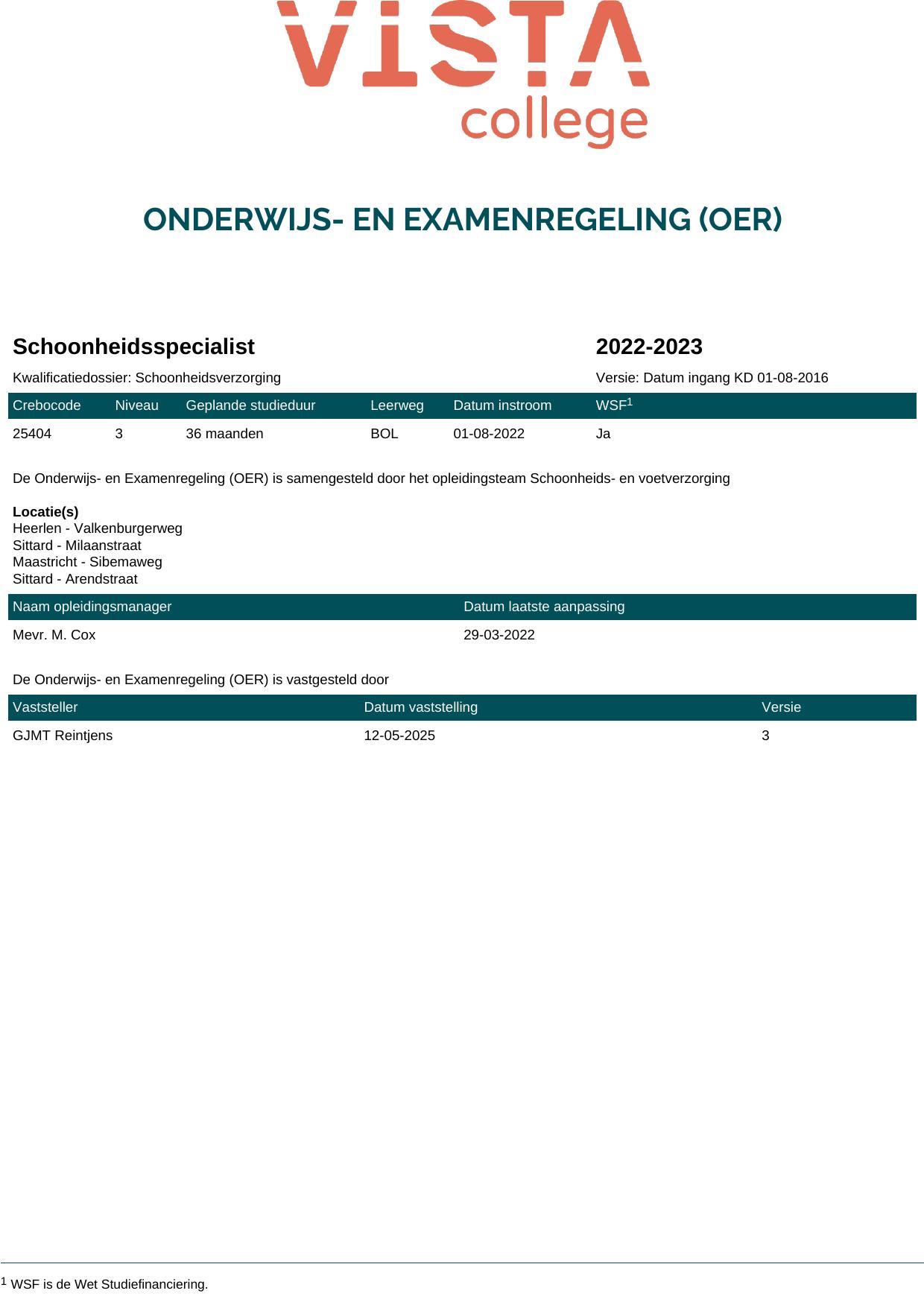 Schoonheidsspecialist 2S25404BV3V1 in cohort 2022-2023