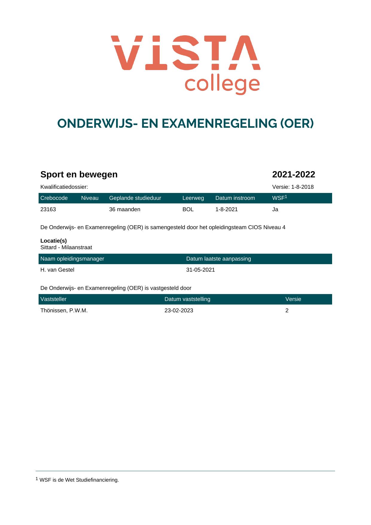 Sport en bewegen 2G23163BV3A1 in cohort 2021-2022