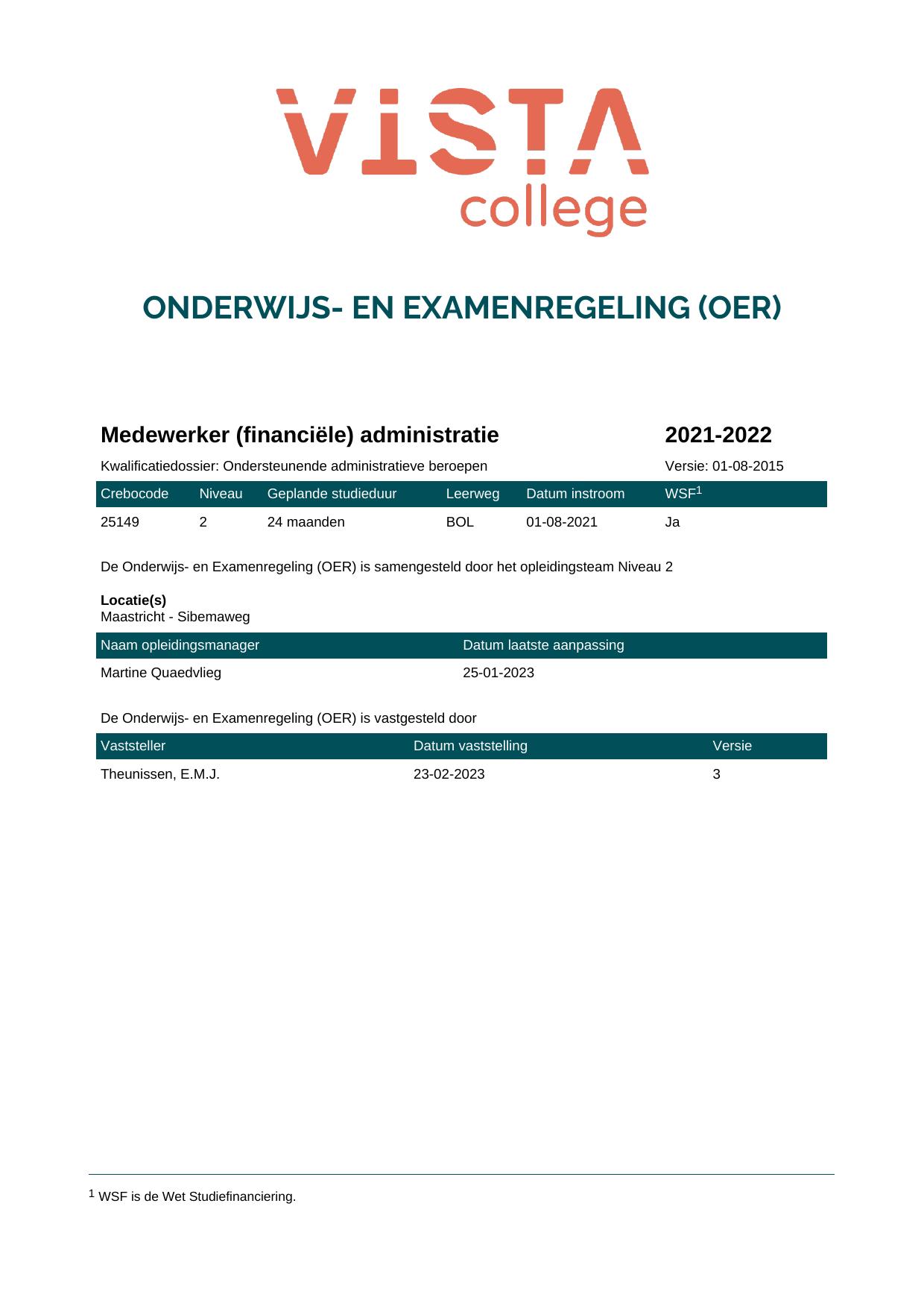 Medewerker (financiële) administratie 1F25149BV2V1 in cohort 2021-2022