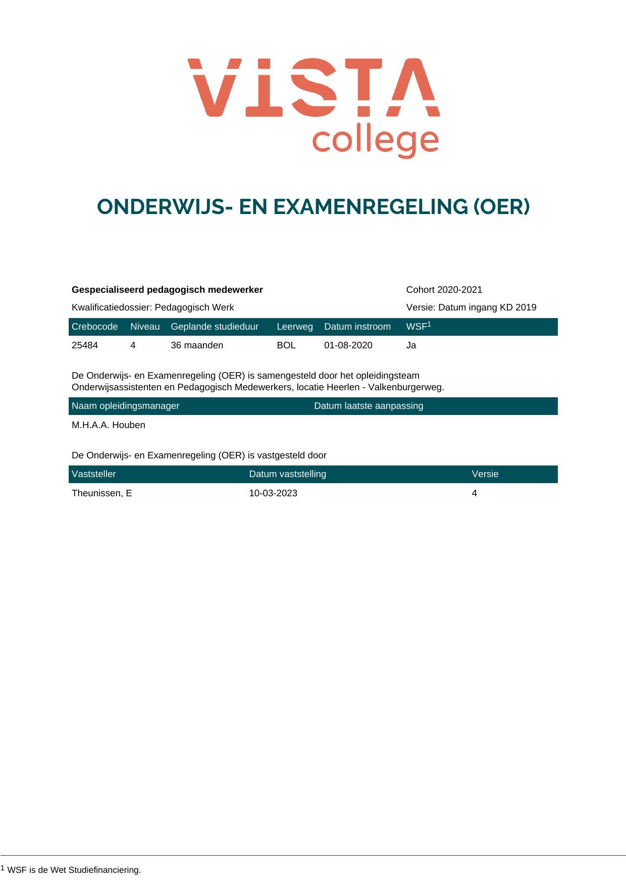 Onderwijsassistent 4P25485BV3V1 in cohort 2020-2021