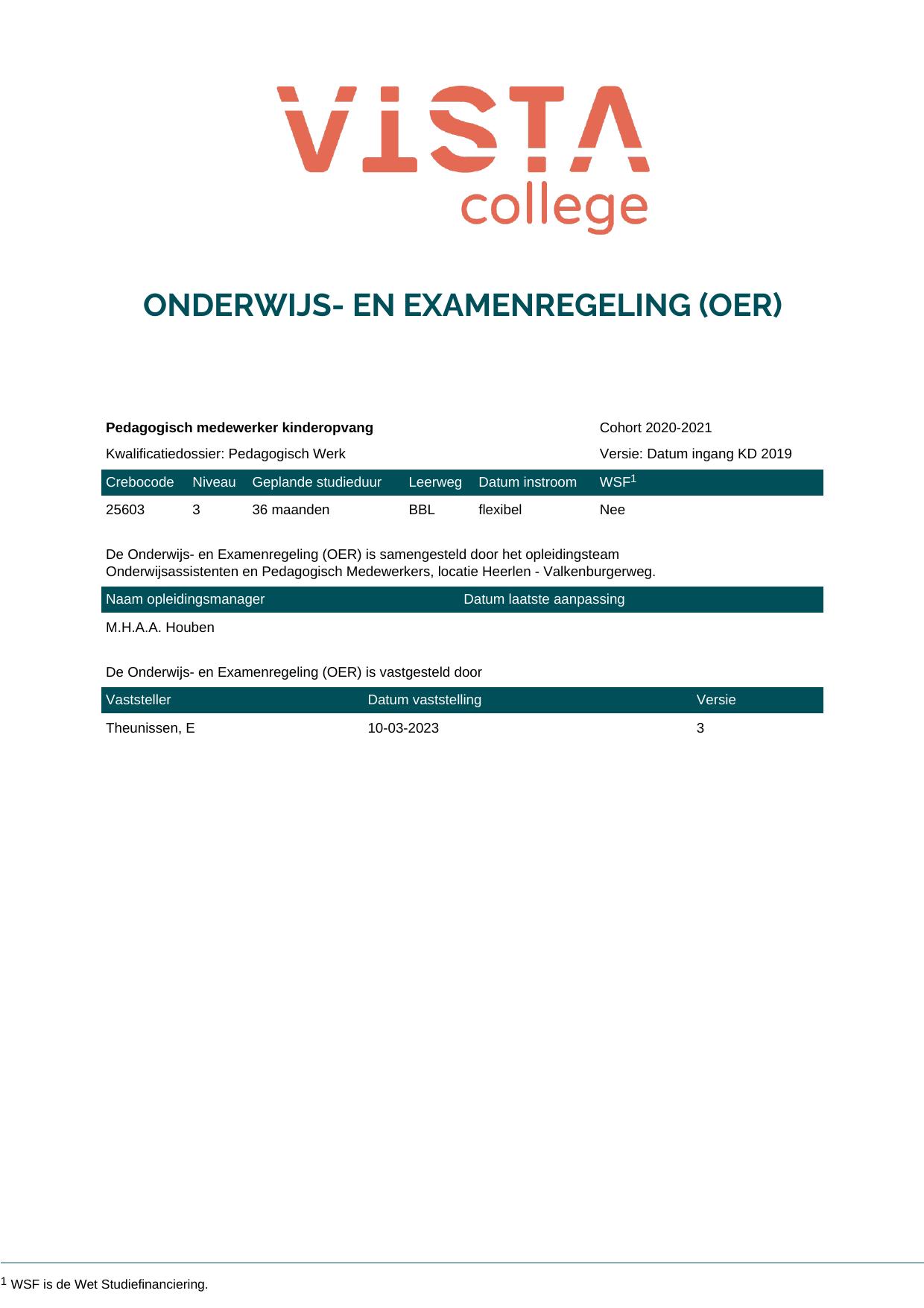 Pedagogisch medewerker kinderopvang 25603O1S in cohort 2020-2021