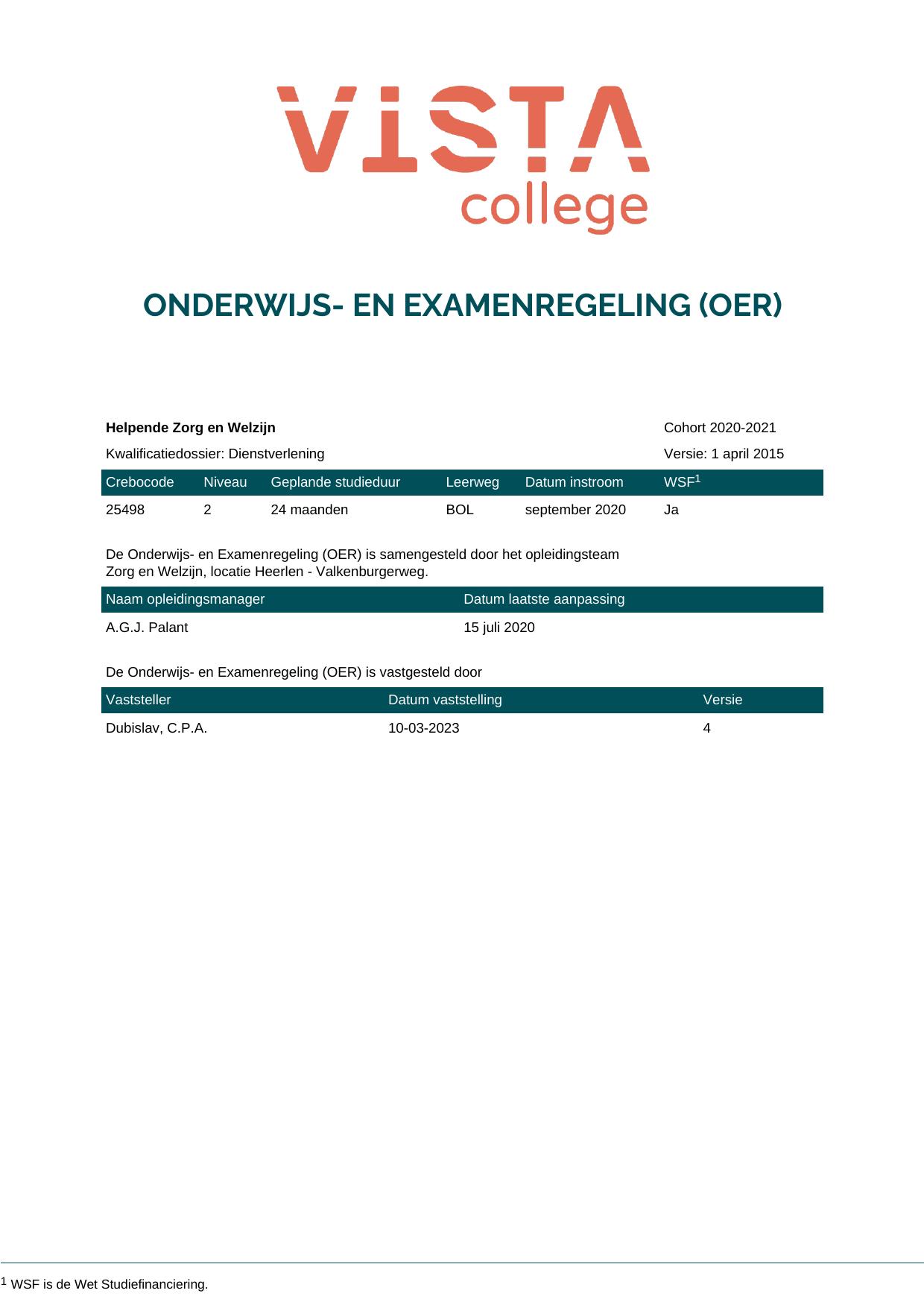 Helpende Zorg en Welzijn 4H25498BV2V1 in cohort 2020-2021