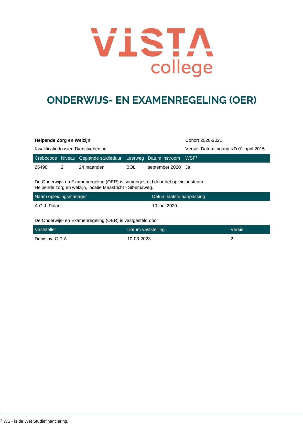 Helpende Zorg en Welzijn 25498O1S in cohort 2020-2021