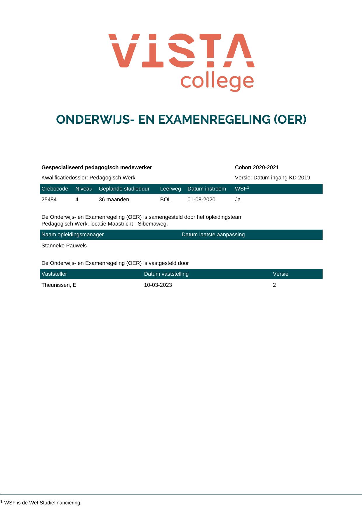 Gespecialiseerd pedagogisch medewerker 25484O1S in cohort 2020-2021