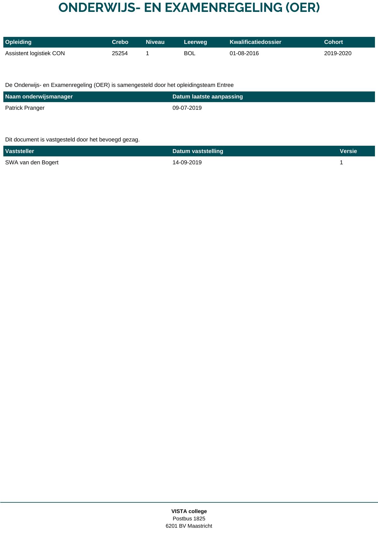 Assistent logistiek CON 25254O1SC in cohort 2019-2020