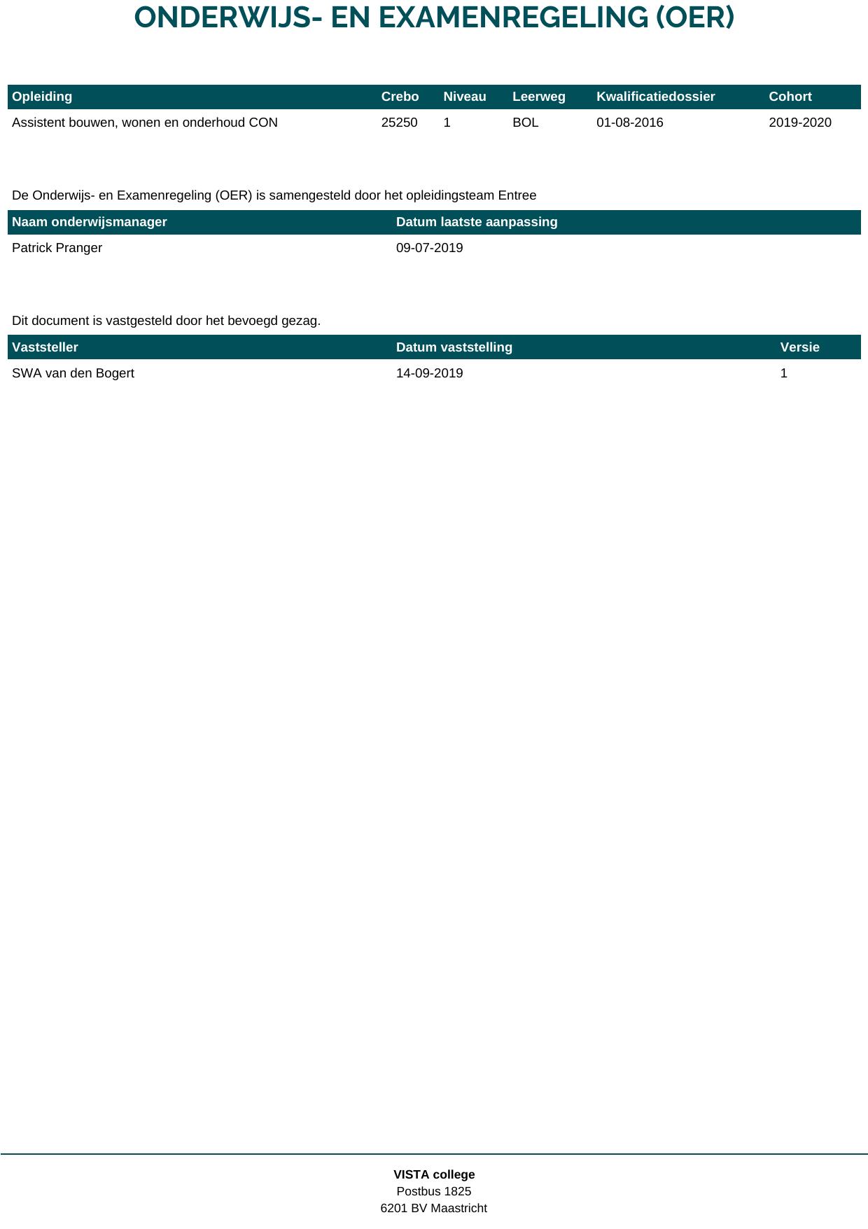 Assistent bouwen, wonen en onderhoud CON 25250O1SC in cohort 2019-2020