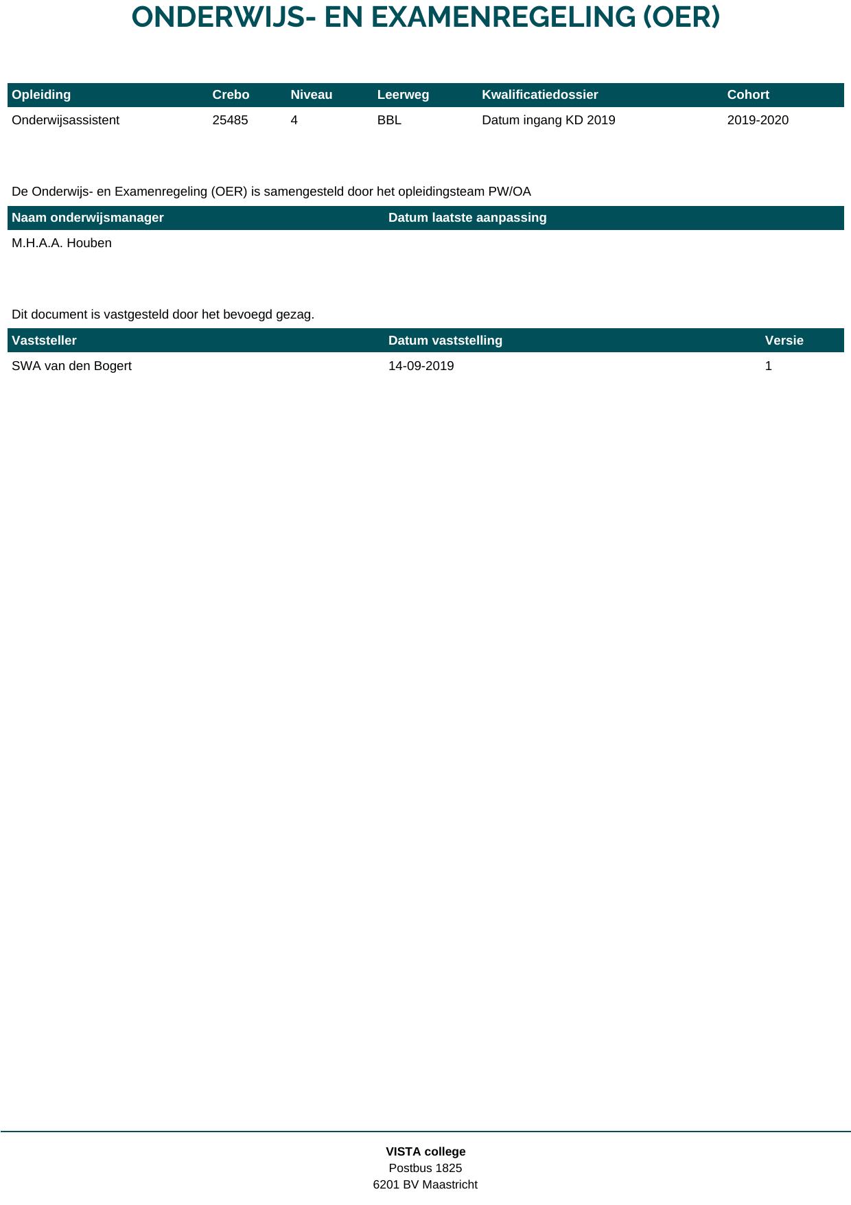 Onderwijsassistent 25485O1S in cohort 2019-2020