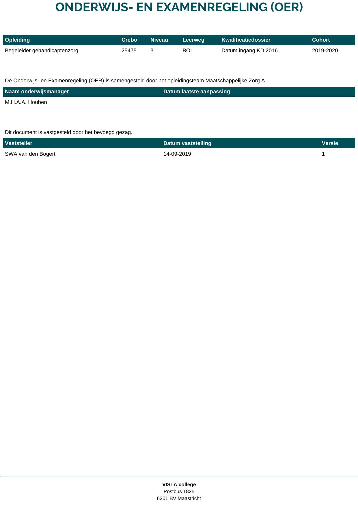 Begeleider gehandicaptenzorg 25475O1S in cohort 2019-2020