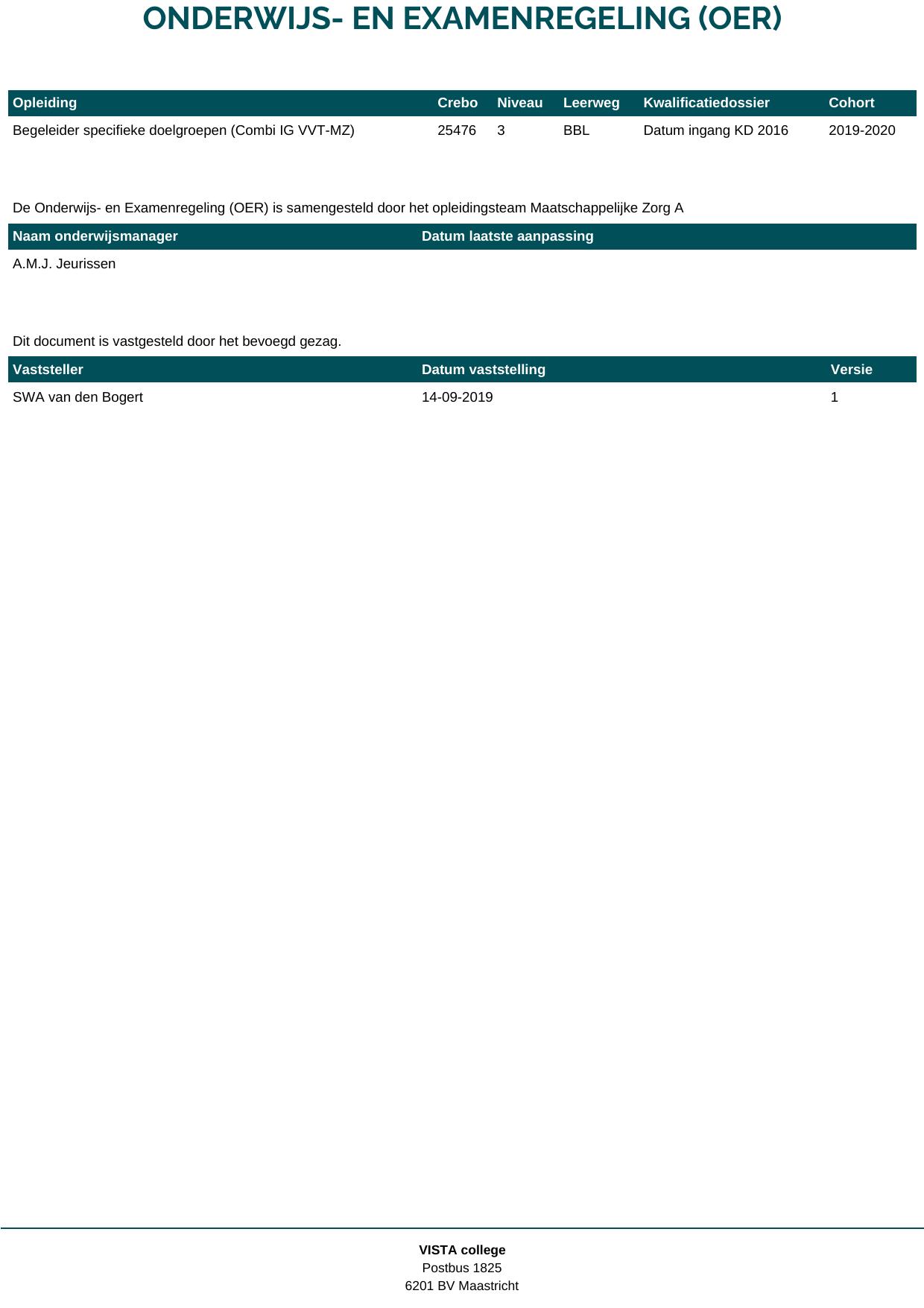 Begeleider specifieke doelgroepen (Combi IG VVT-MZ) 25476B2S in cohort 2019-2020