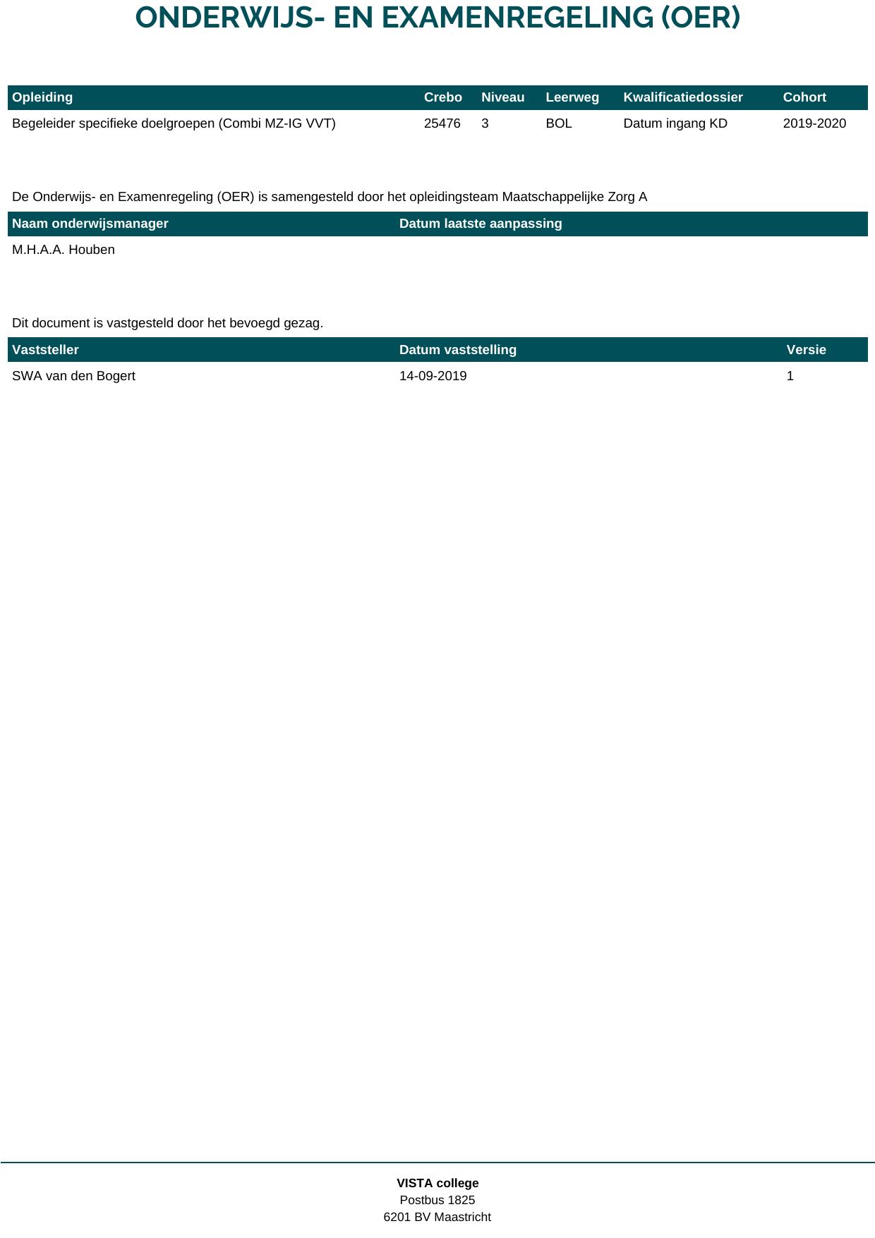Begeleider specifieke doelgroepen (Combi MZ-IG VVT) 25476O2S in cohort 2019-2020